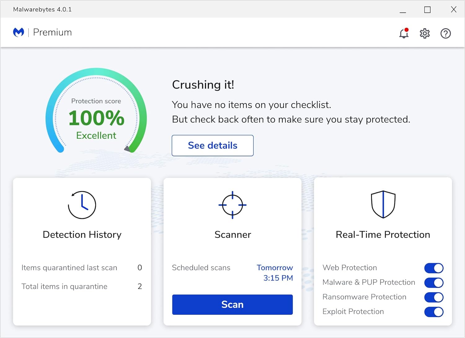 INCREDIBLY EASY TO USE: Our simple user interface enables you to fully control your protection to meet your needs without requiring technical expertise. You can schedule scans, adjust protection layers, and choose your desired scan mode. Protecting your devices shouldn’t be complicated
