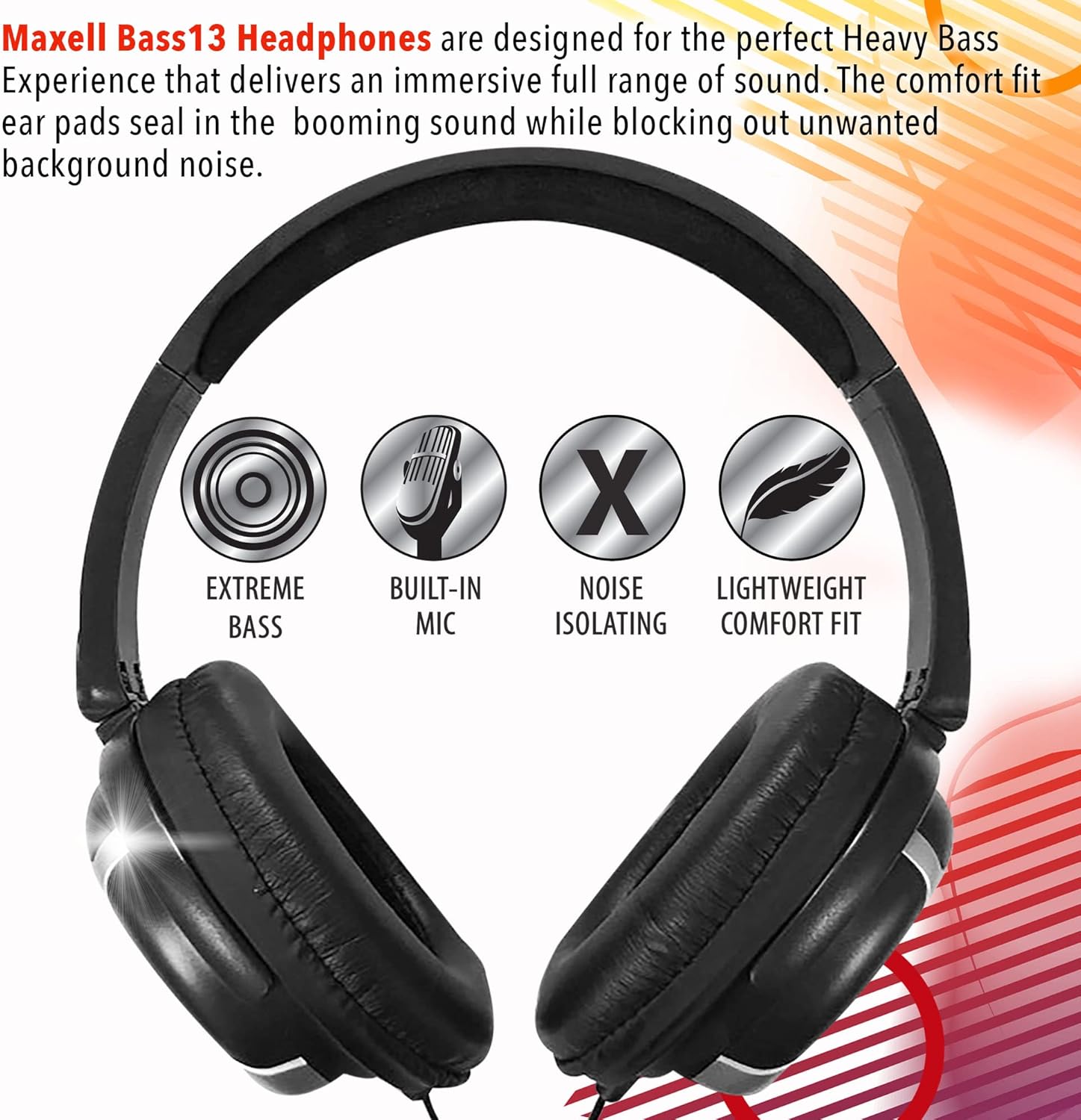 Maxell Bass 13 headphones with microphone, 4 -foot cable, black