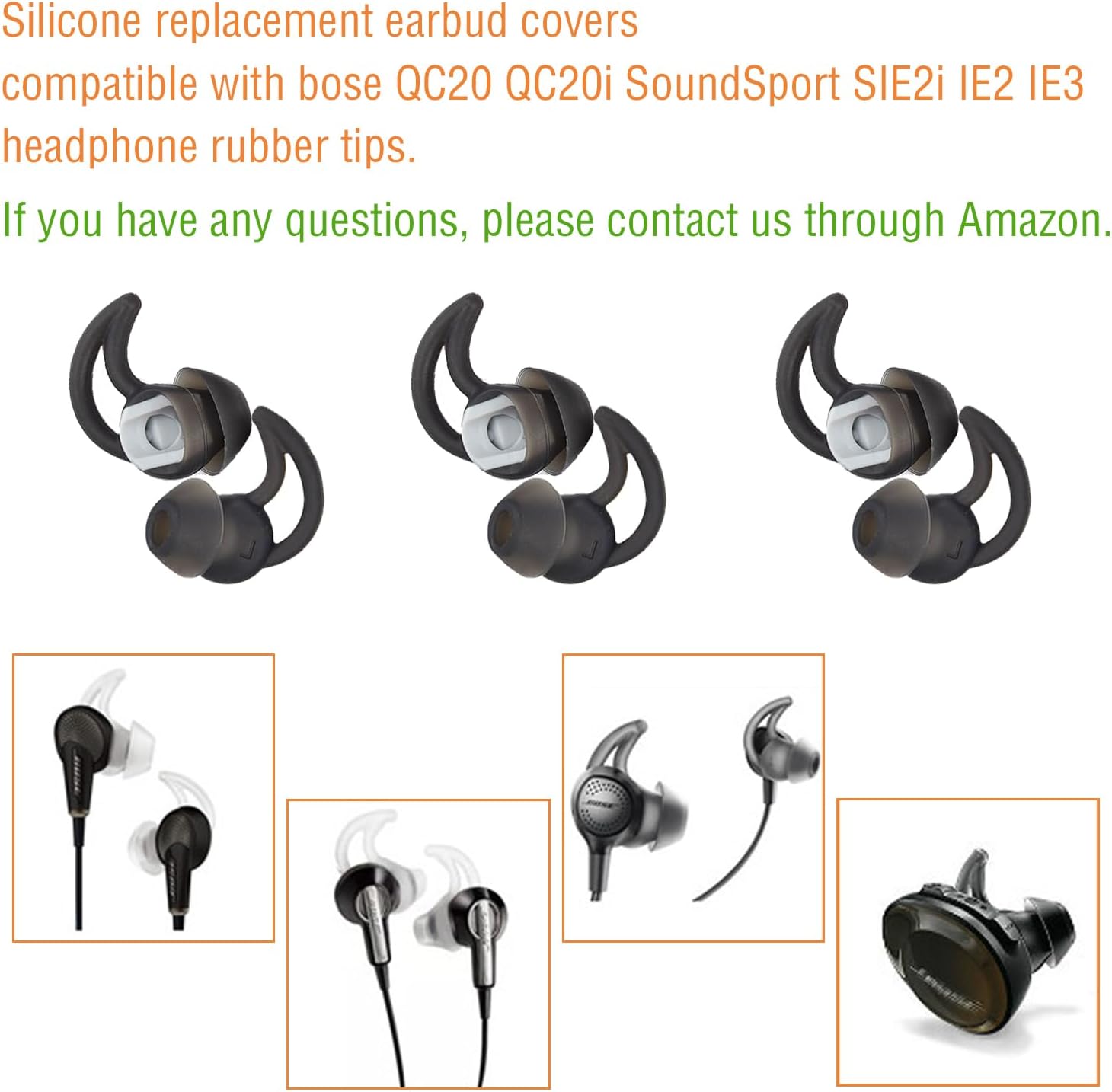 1. Silicone replacement headphones compatible with Bose QC20 QC20i Soundsport Sie2i IE2 IE3 Headphones Rubber tips.
