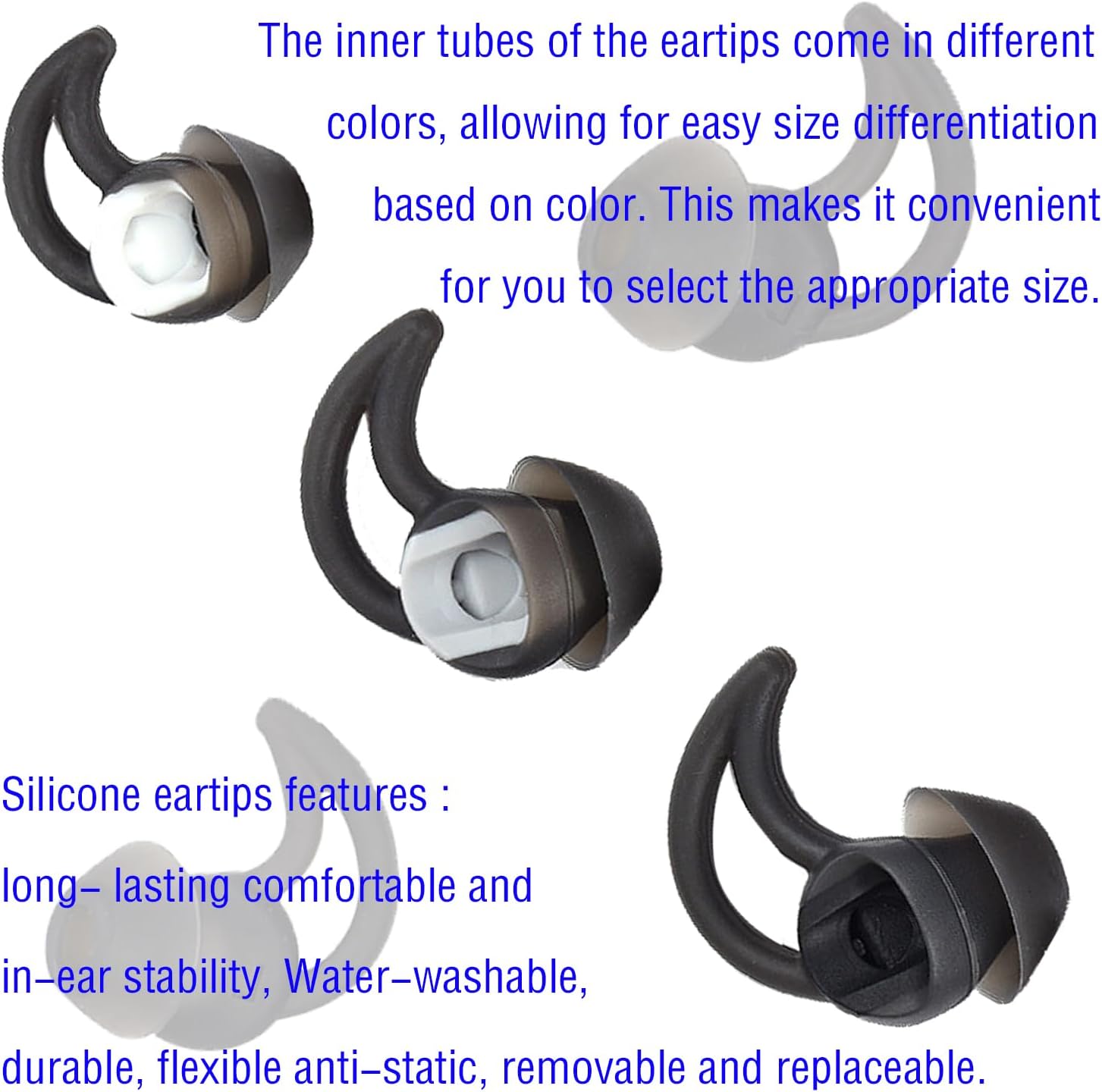 2. Tarbud tips material: soft, reusable and durable silicone material, elastic, soft to the tact and comfortable for the ears.