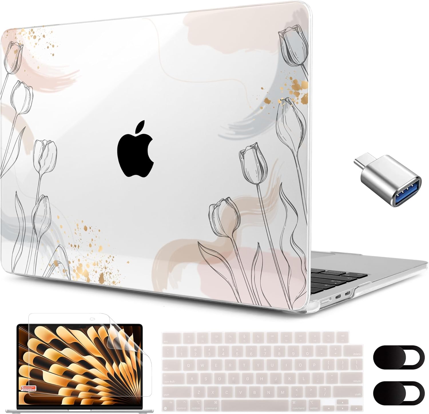 : The webcam cover can prevent network viruses from illegally accessing your personal privacy. The screen protector protects your screen from daily scratches. The matching keyboard cover provides full protection for your MacBook keyboard against key wear and tear. This USB Type C to USB connector also supports synchronous charging to your phone and tablet with data transfer. At the same time, it supports OTG function to charge USB flash disk directly.