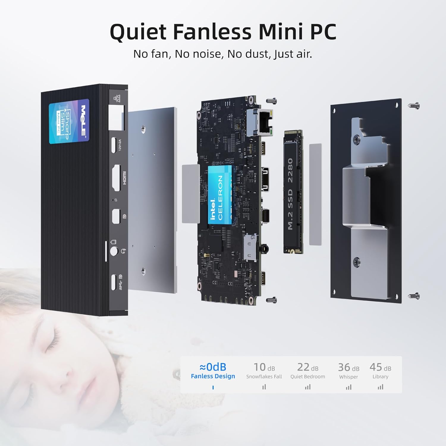 MeLE Quieter3C Fanless Mini PC, Celeron N5105 8GB 128GB, Microphone…