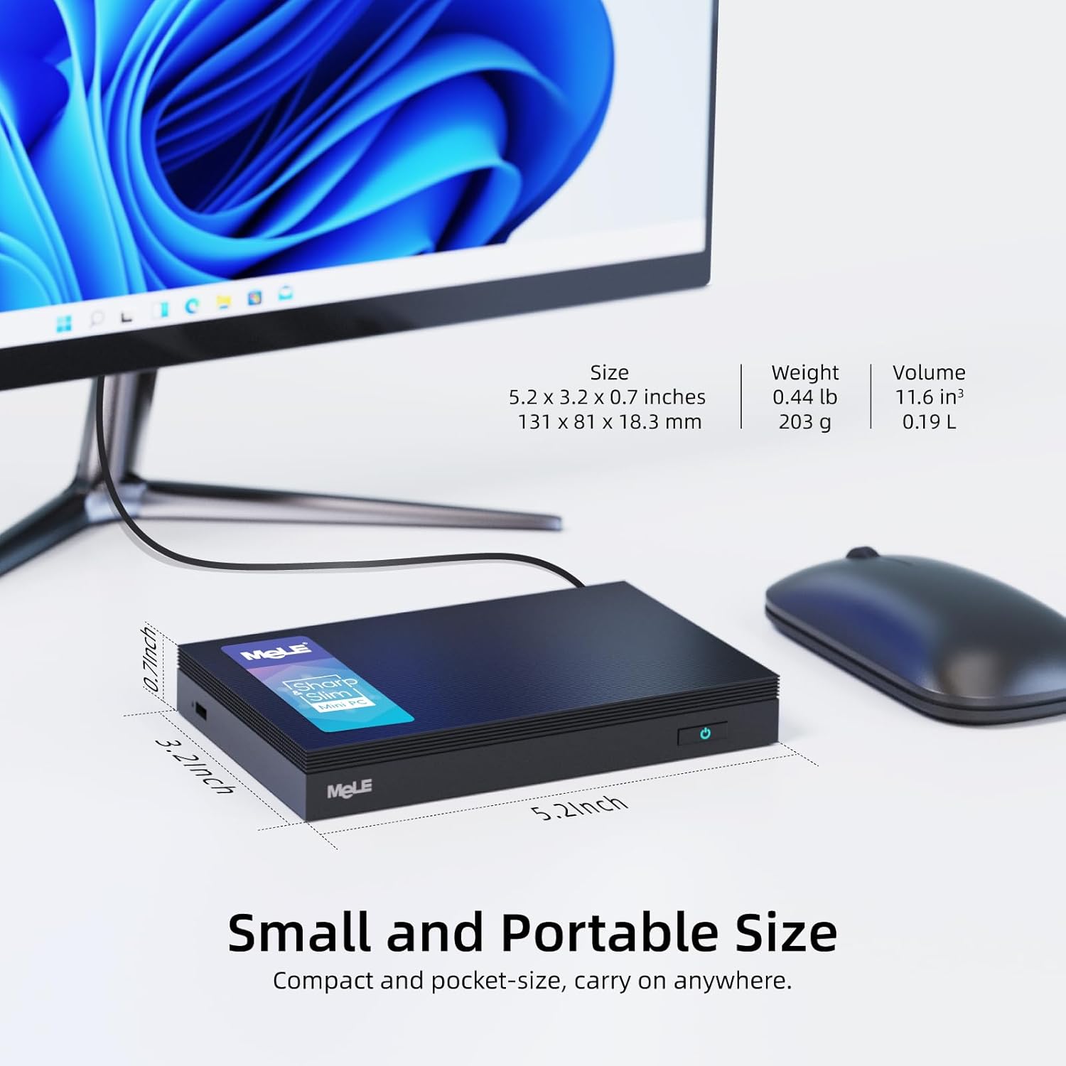 Sleek Fanless Cooling Design: This fanless PC features a passive cooling system that prevents overheating. Provides a quiet and stable computing environment, supports 24/7 operation. While its unique design ensures dust resistance and quiet operation, please note that fanless mini PCs will have a surface temperature of 55°C to 70°C, which is higher than the case temperature of mini PCs. traditional with fan, but meets safety standards. standards of the International Electrotechnical IEC62368-1:2018.