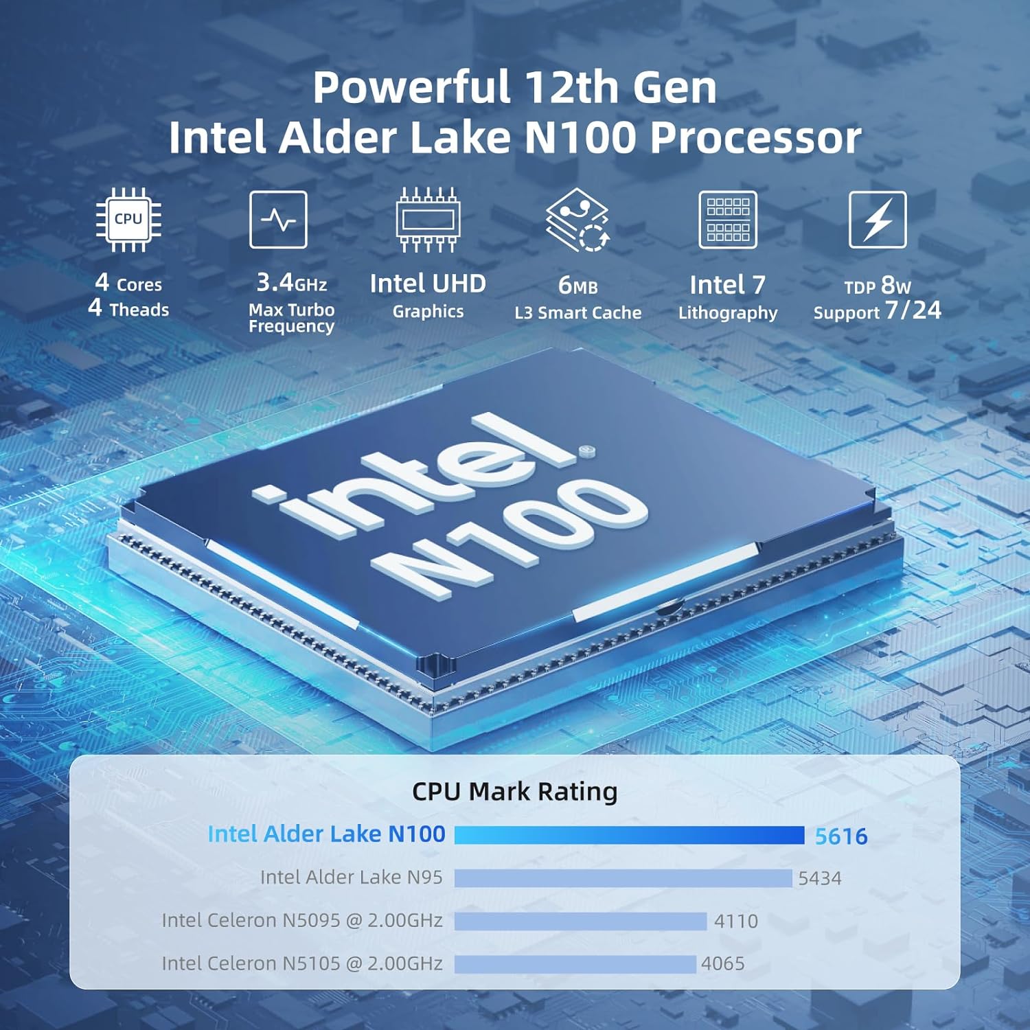 【Latest 12th Gen Alder Lake N100 Processor】MeLE Quieter4C micro PC is equipped with a faster 12th Gen Alder Lake N100 processor (up to 3.4GHz), 4 cores, 4 threads, 6MB L3 smart cache with 8W TDP. N100 mini PC delivers 35% higher performance than N5105/N5095 CPU, with lower power consumption and can support 24/7 stable performance. The tiny computer comes pre-installed with Windows 11 Pro OS and also supports Linux, Ubuntu and Debian. Ideal for business, industrial, office, education and entertainment.
