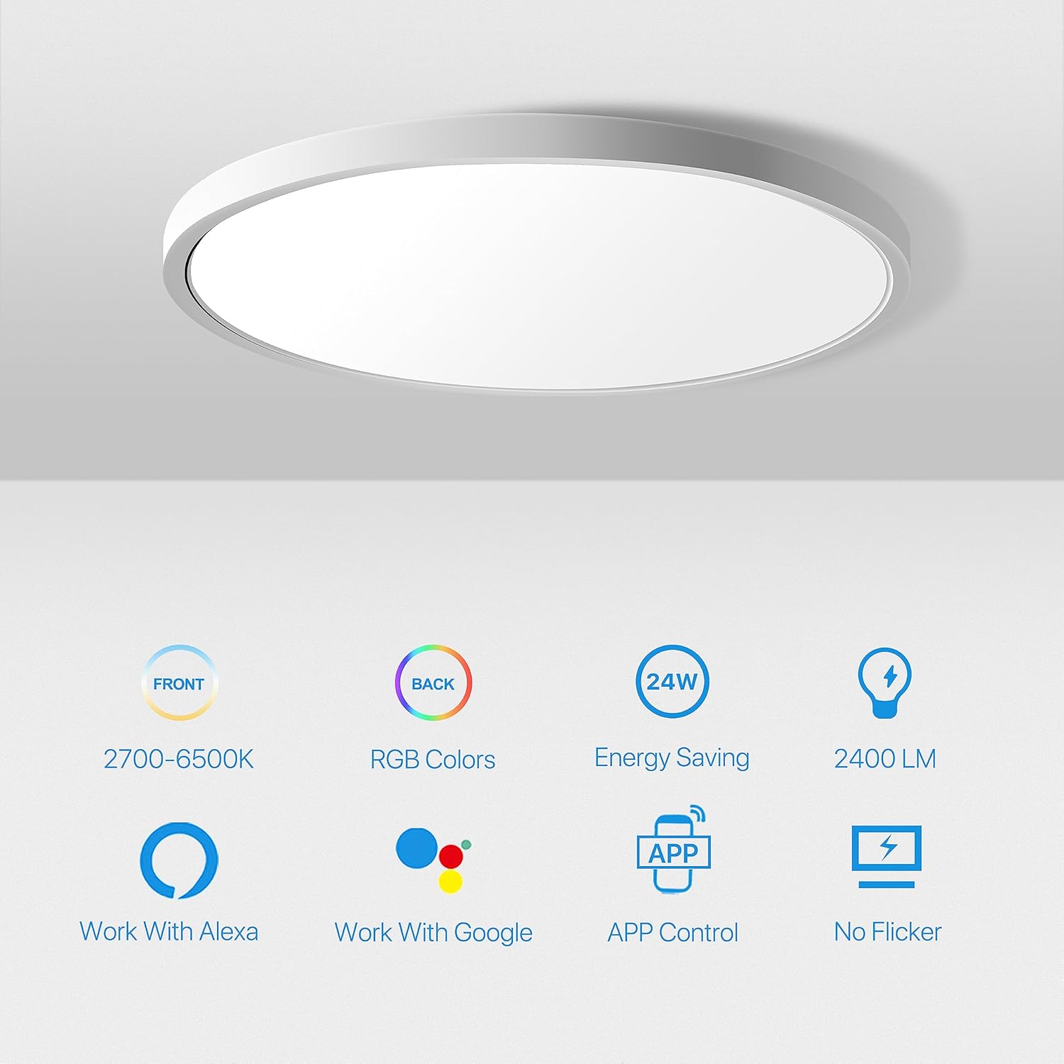 Back Light – RGB atmosphere lamp mode – 16 million tunable RGB colors. The lighting is soft and not dazzling. The RGB color coincidence is suitable for several festivals, and different colors can also adjust the mood. An RGB smart roof light that can easily create different dynamic scenarios.