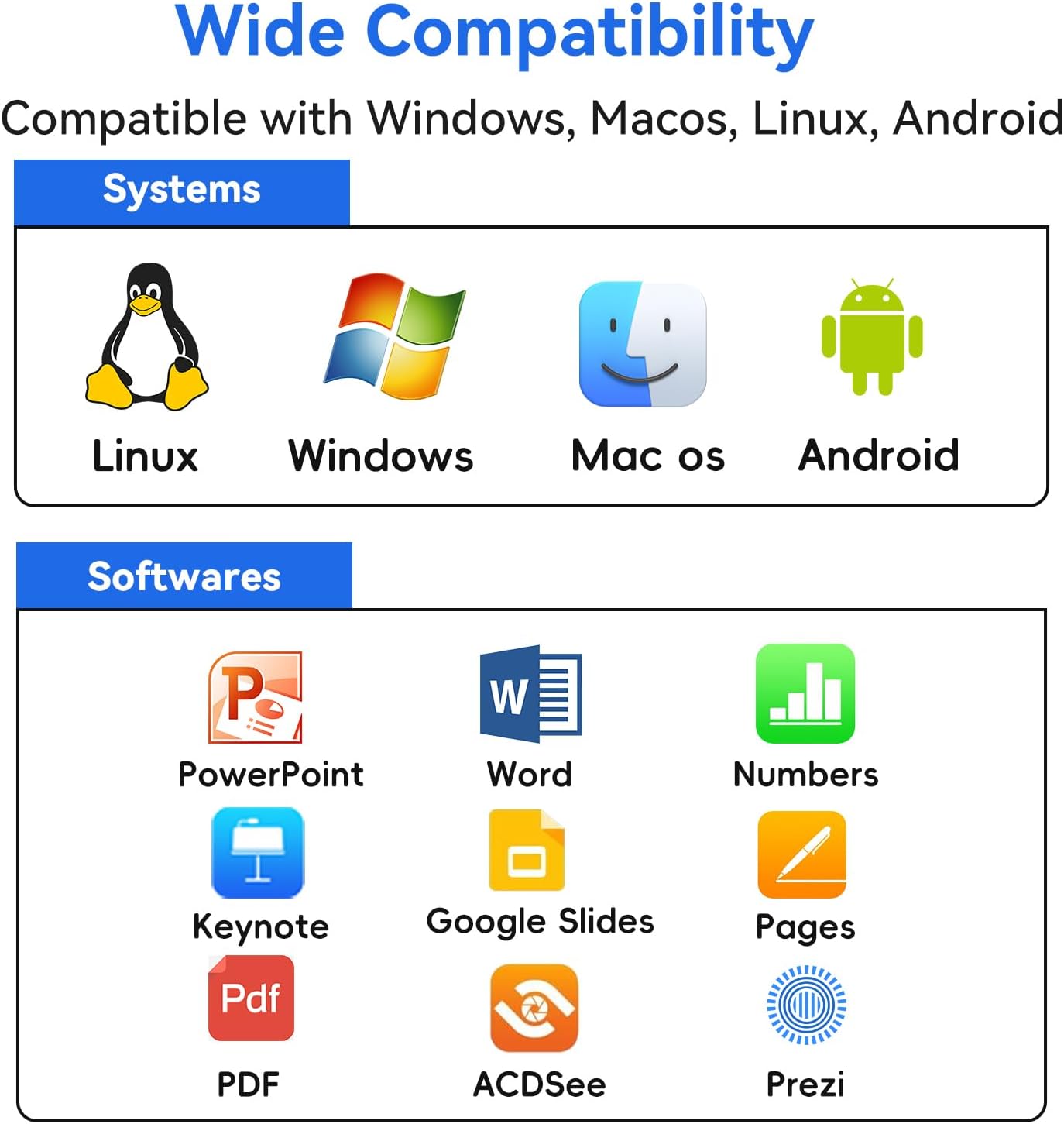 Universal Compatibility: This PowerPoint clicker is compatible with various operating systems including Windows, Mac OS, Linux and Android. It easily integrates with popular presentation software like Google Slides, PowerPoint, Prezi, and iWork, making it the ideal choice for professionals across platforms.