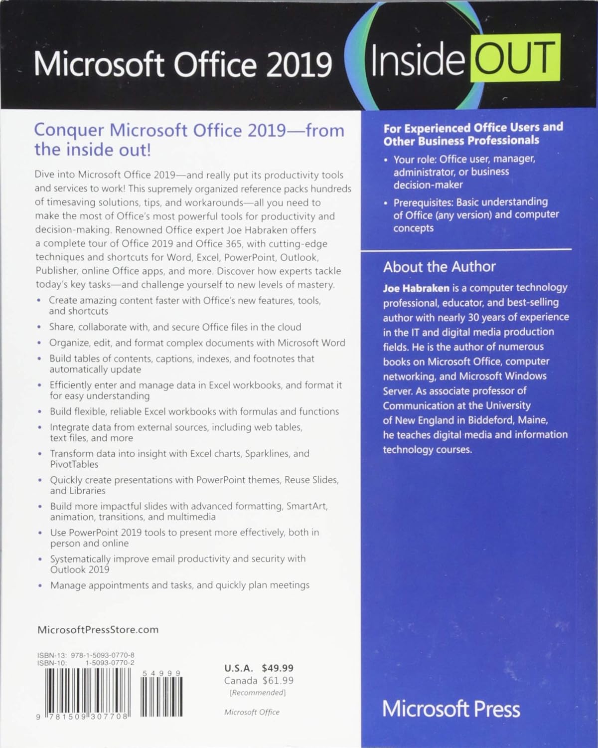 Dive into Microsoft Office 2019 and really put its productivity tools and services to work! This highly organized reference includes hundreds of time-saving solutions, tips, and workarounds—everything you need to get the most out of Office's most powerful tools for productivity and decision-making. Renowned Office expert Joe Habraken offers a complete tour of Office 2019 and Office 365, with cutting-edge techniques and shortcuts for Word, Excel, PowerPoint, Outlook, Publisher, online Office applications, and more. Discover how experts approach today's key tasks and challenge yourself to new levels of mastery.