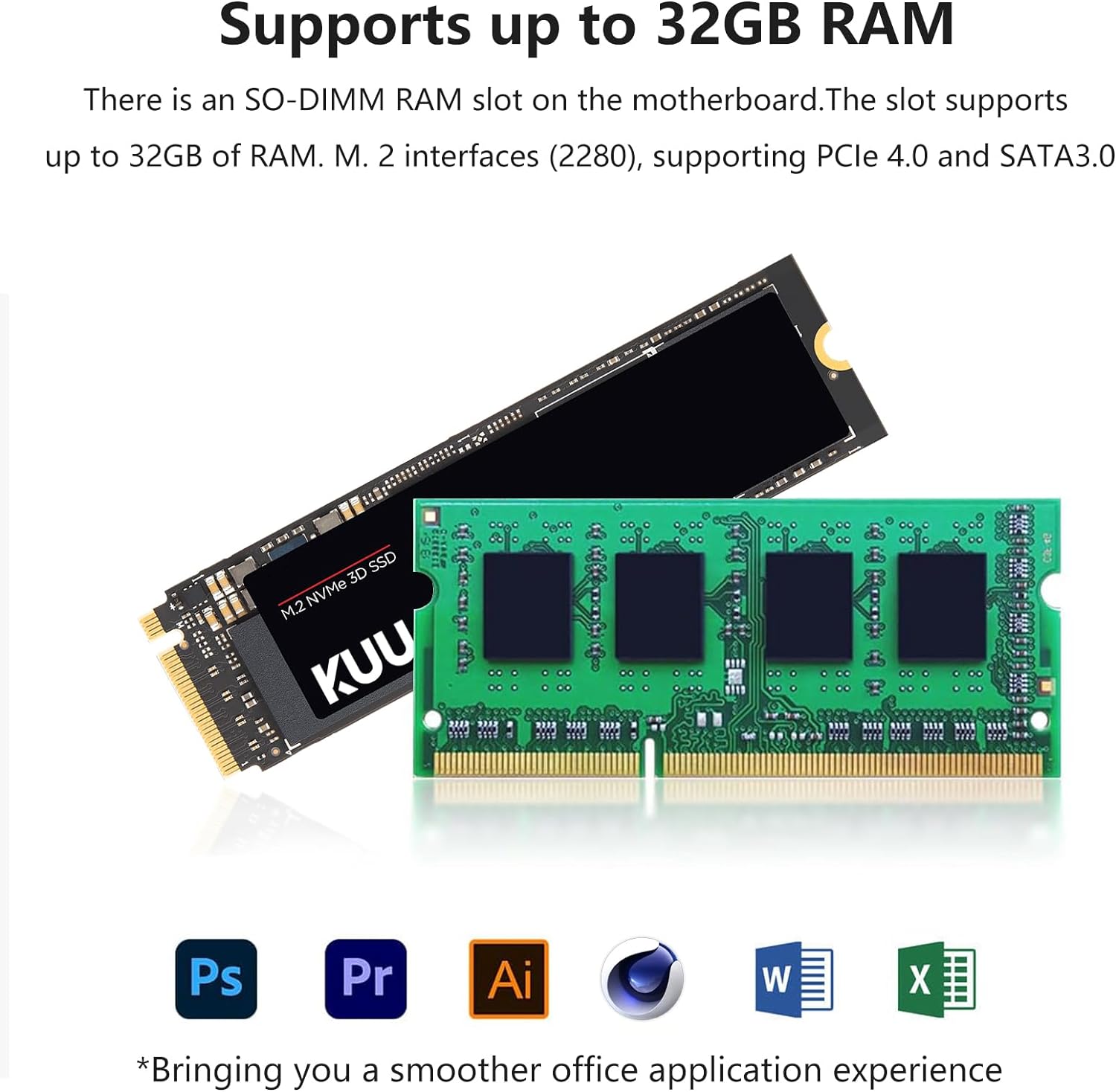 【💾 Optimized Storage】Enjoy high-speed 8GB DDR4 memory and a 256GB M.2 SATA SSD, expandable to 2TB. The M.2 interface supports PCIe4.0 and SATA3.0 SSD memory configurations, ensuring ample space for all your documents and applications.