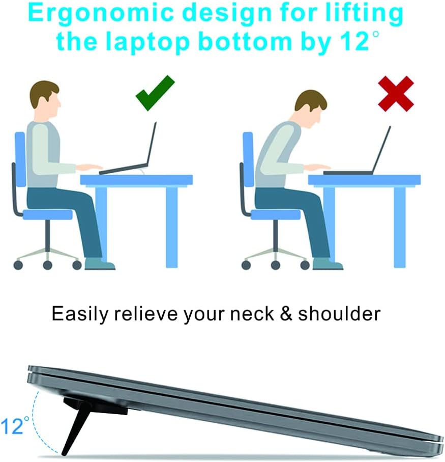 Ergonomic design: This mini support for laptop can lift the laptop to provide the observation position and the most comfortable operating angle. Its ergonomic design allows you to easily observe and write, and effectively relieve the neck during the continuous typification pain in the neck and shoulders.
