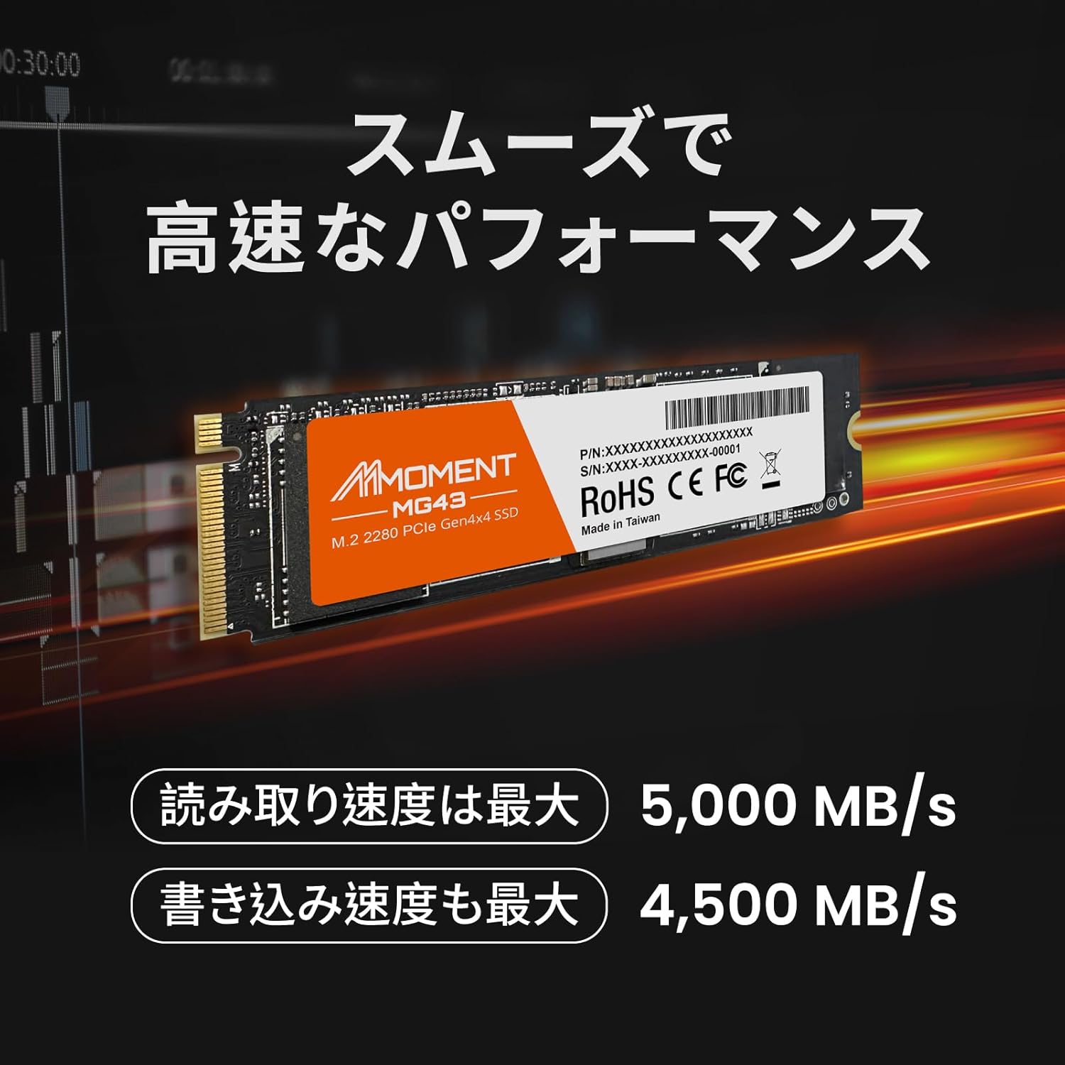 It offers up to 5,000 MB/s reading and 4,500 MB/s of writing writing through the PCIE GEN4X4 interface for the creation of perfect videos and audio*.
