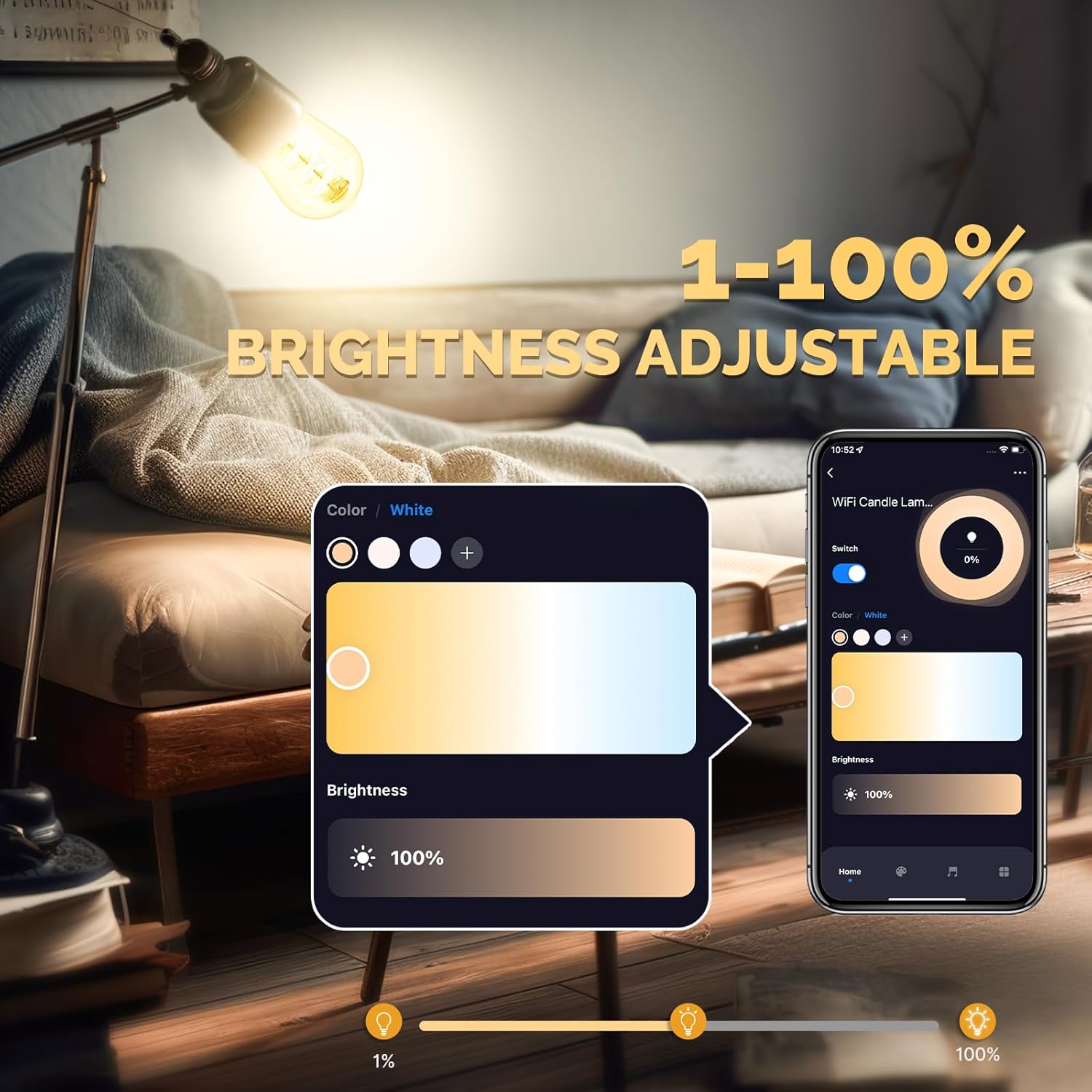 【Control from anywhere】You can control the ST64 WiFi bulb anywhere you want. When you are outside, you don't have to check whether all the lamps are off or not, just control with a tap on your Smart Life app.