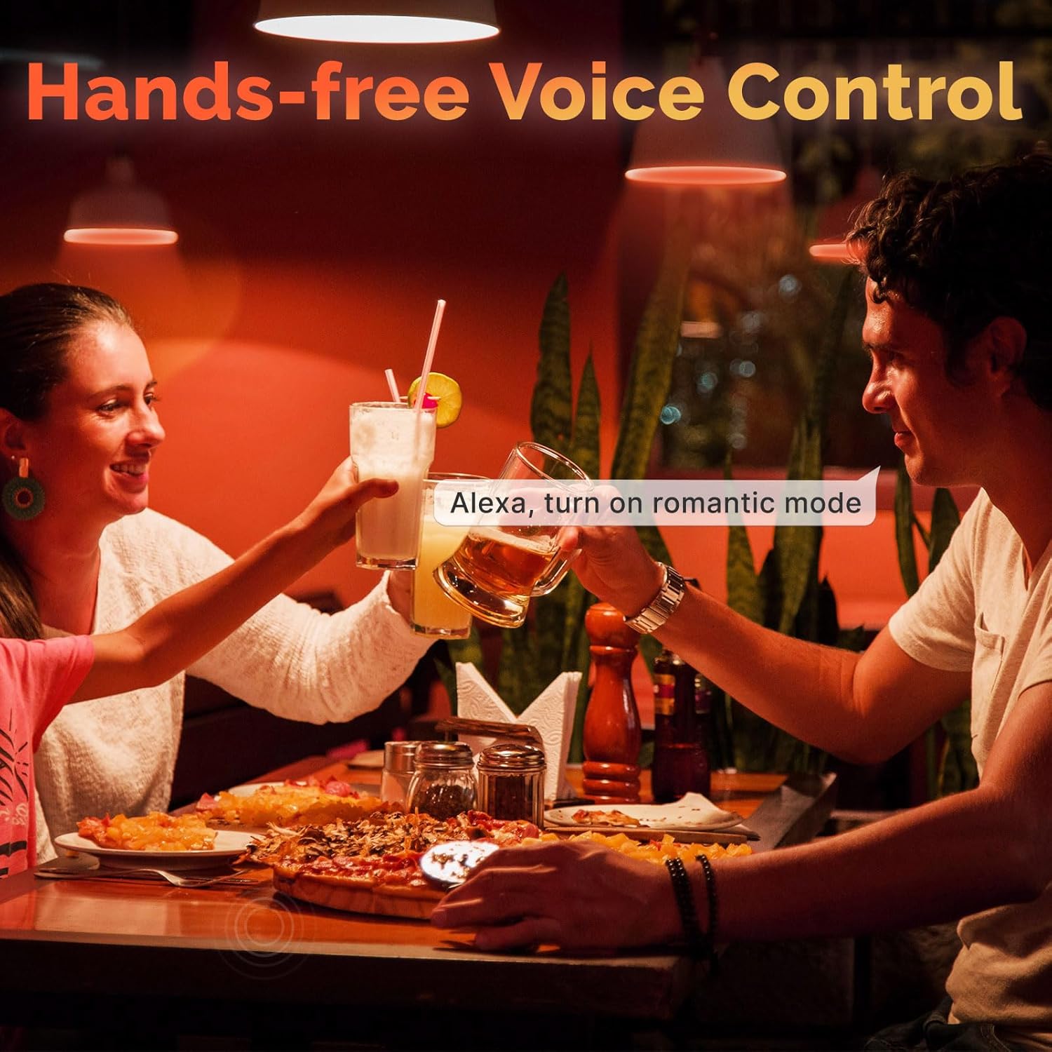 【Hands-free Voice Control】Compatible with Alexa/Google Home for easy voice control. Through your voice to turn on/off or dim/brighten your light, even change your light to the specific color you want.