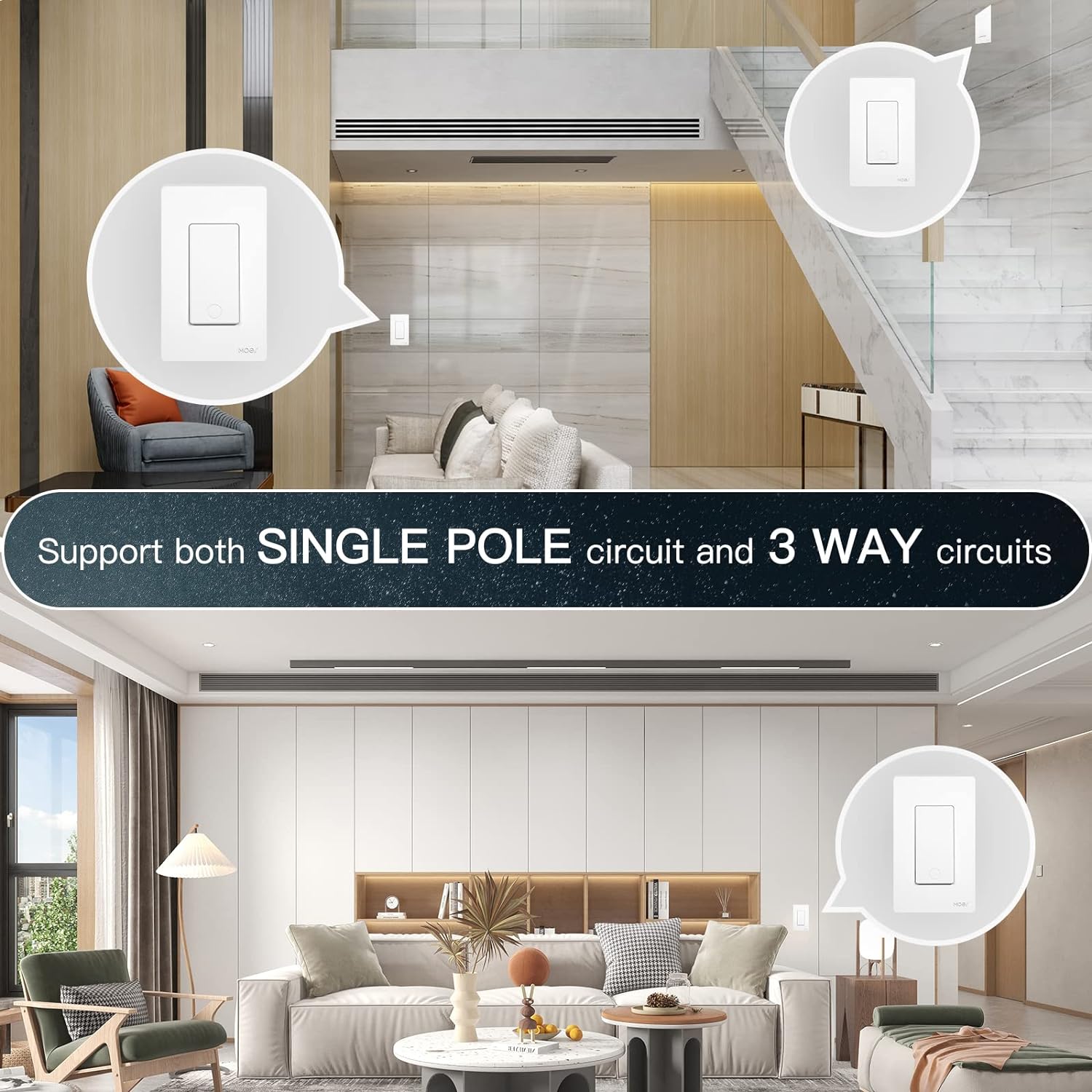 【Single Pole & 3 Way Smart Switch】Easily replace any or both of your traditional 3-way switches to control one light from 1 or 2 locations, commonly found in living rooms, hallways, and stairwells.