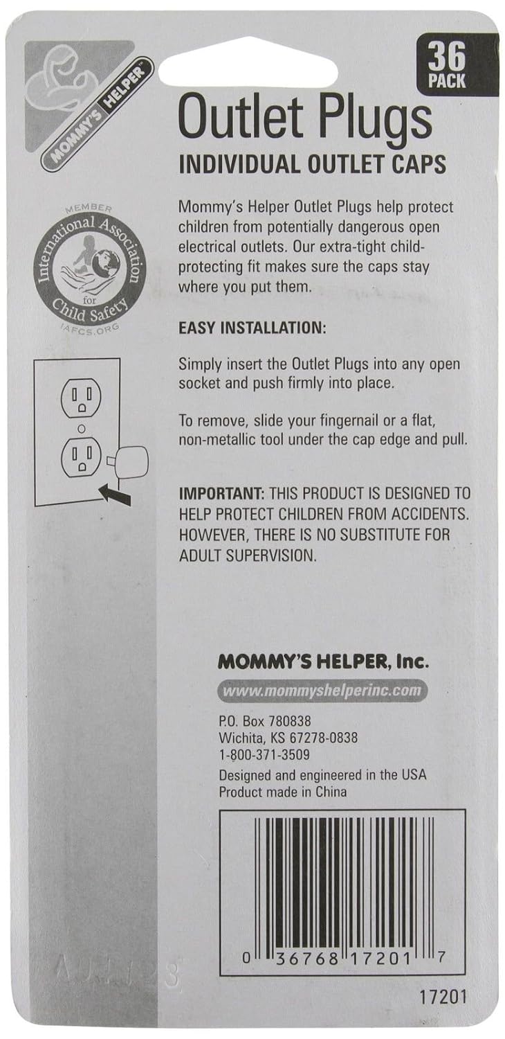 Mommys Helper Outlet Plugs, 36-Pack, help protect children from potentially dangerous open electrical outlets. Our extra tight child protective fit ensures the caps stay where you put them.
