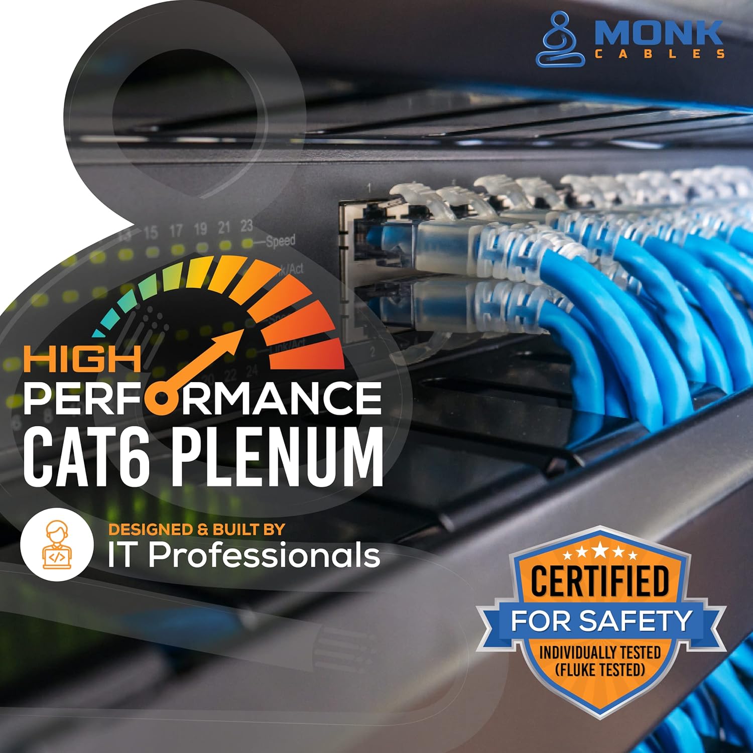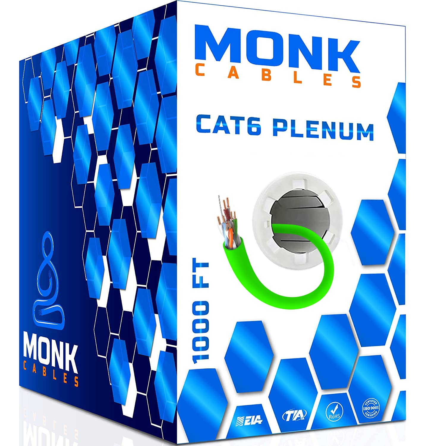 MONK CABLES | CAT6 Plenum Cable 1000ft | UTP, 23AWG, 550MHz…