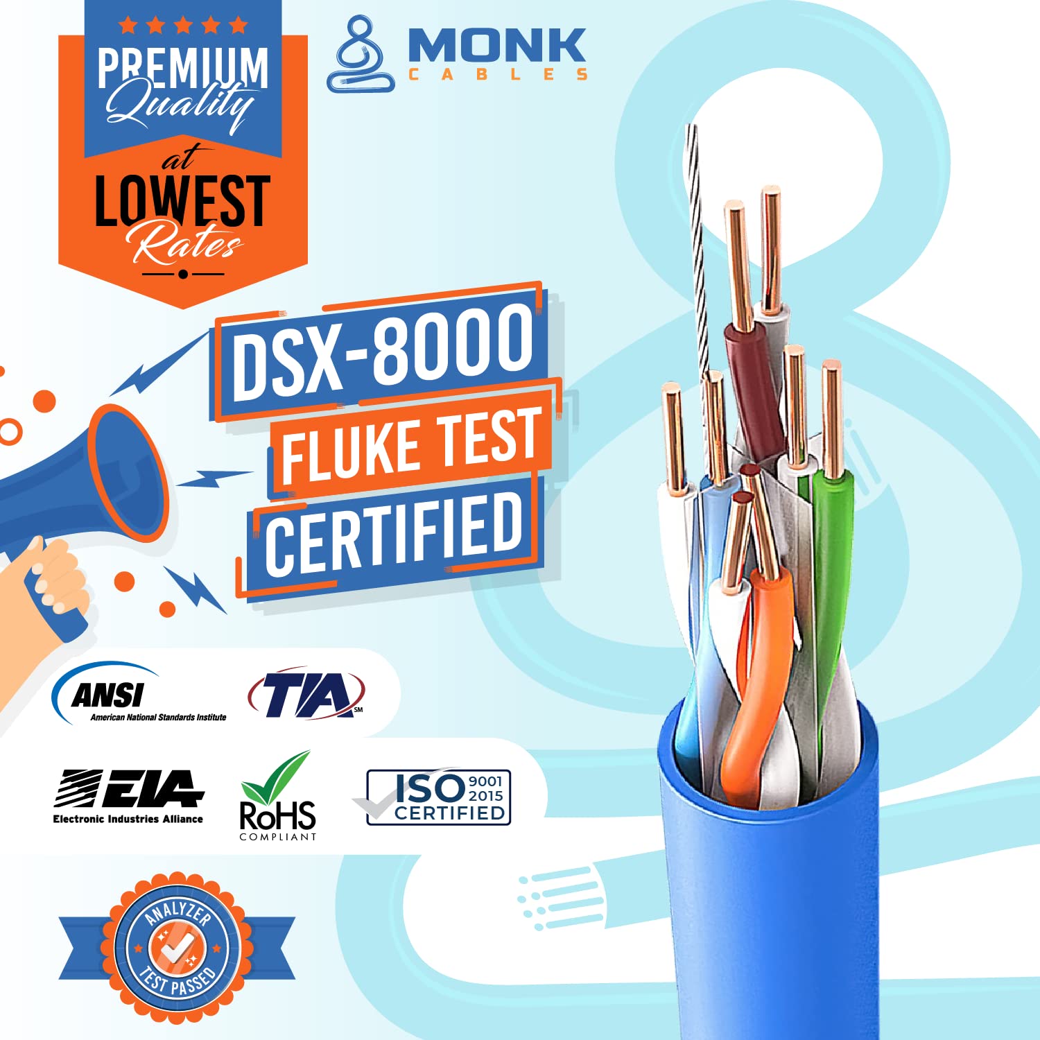 💪 & : Our cable produces the strongest signal, along with the best Conductivity, compared to any other cable on the market | Our cable is an excellent choice for 10 Gigabit Ethernet | RoHS Certified | ISO 9001:2015 Certification