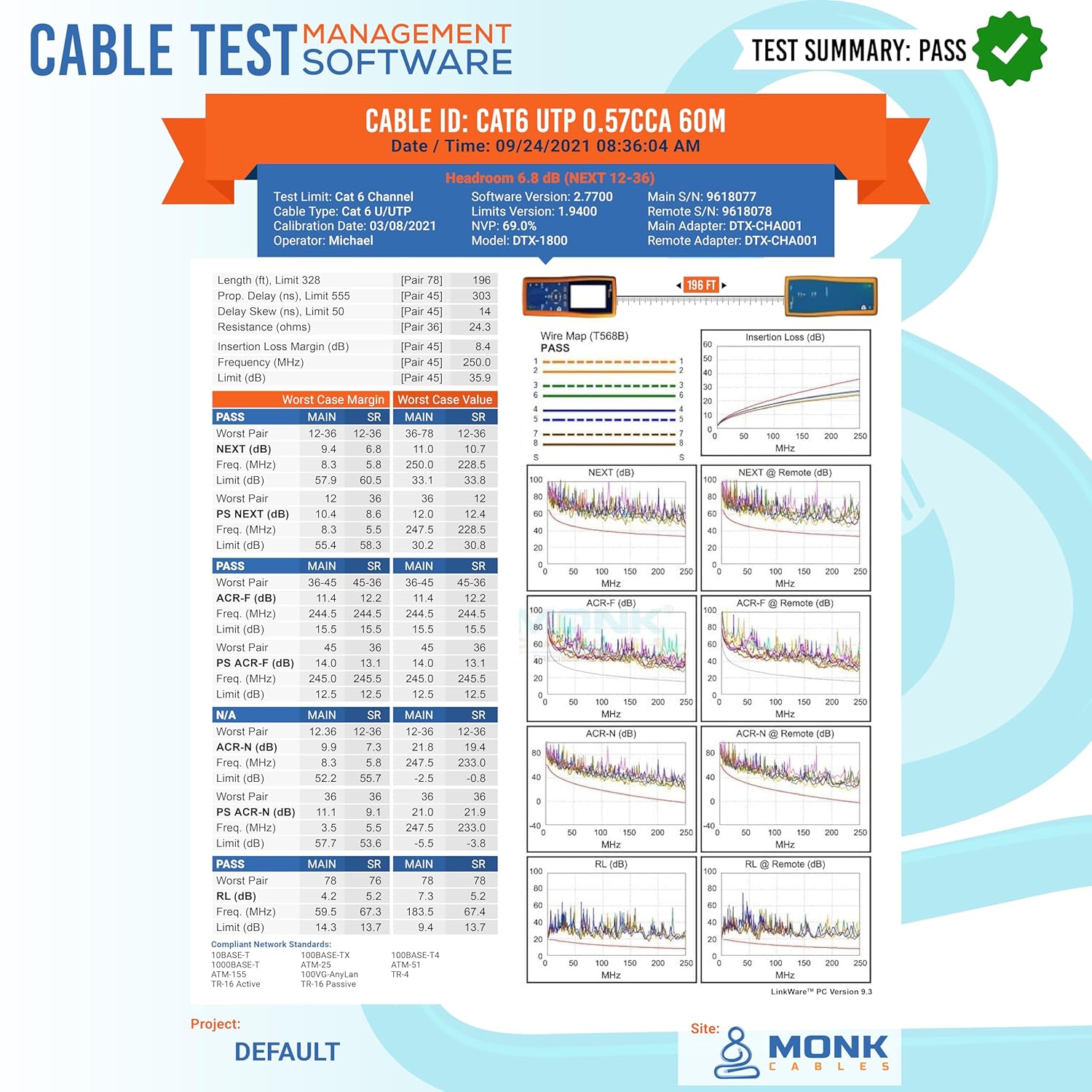 Our cables feature the highest CCA conductors on the market for data transmission. Each and every one of our cables is individually tested by a DSX-8000 CABLE CERTIFIER to ensure the highest and consistent quality and compliance with 568.2C standards.