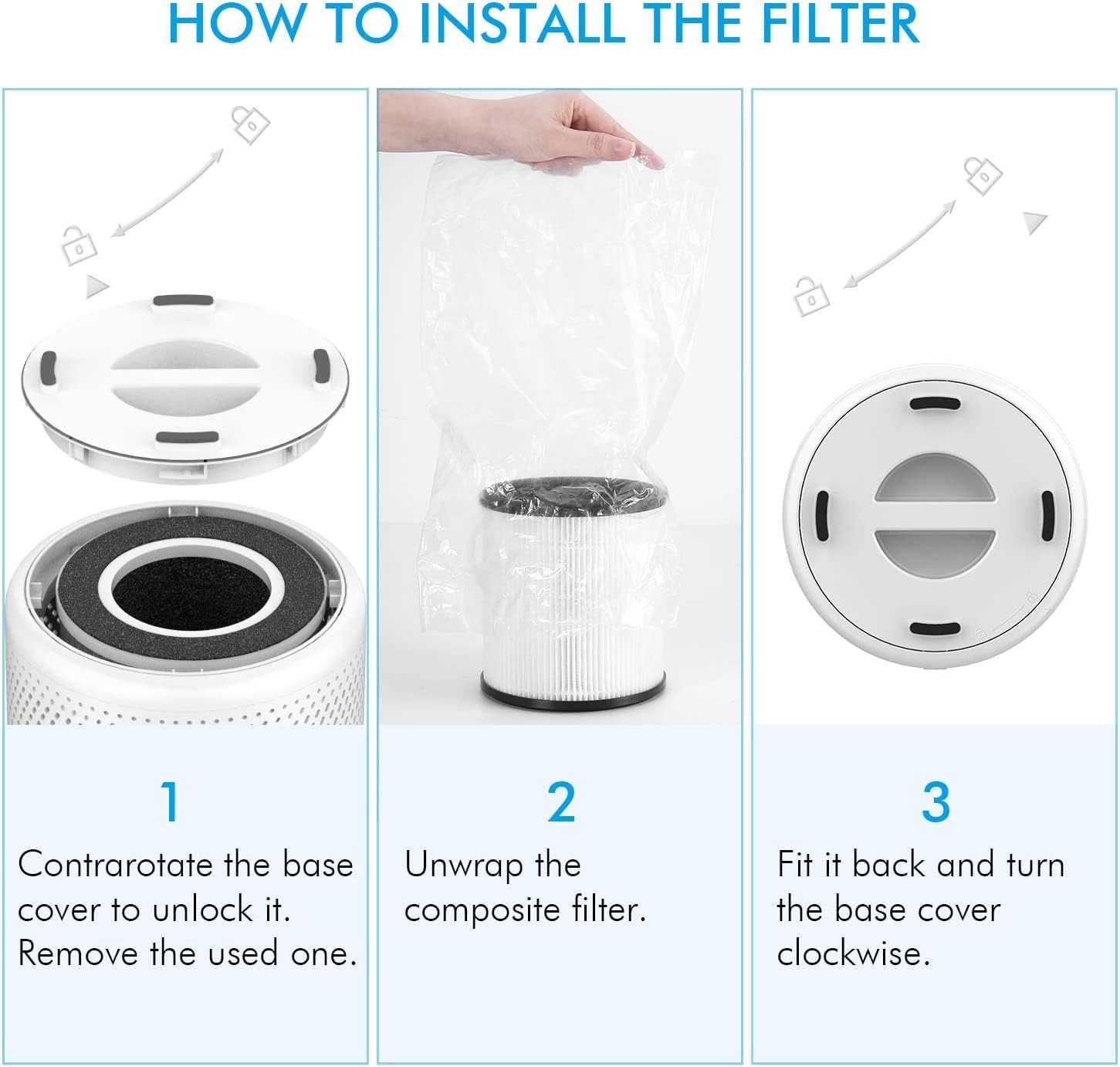 ULTRA QUIET, ENERGY SAVING & SAFE: Thanks to the new brushless motor, the noise level of 20 dB is almost silent. It cleans the air and does not affect work, study or sleep. Low power operation makes it save energy greatly. Child lock prevents operating errors caused by pets or children. The replacement filter should be replaced every 3 to 6 months depending on the environment and frequency of use (search B08PK4WM4W)