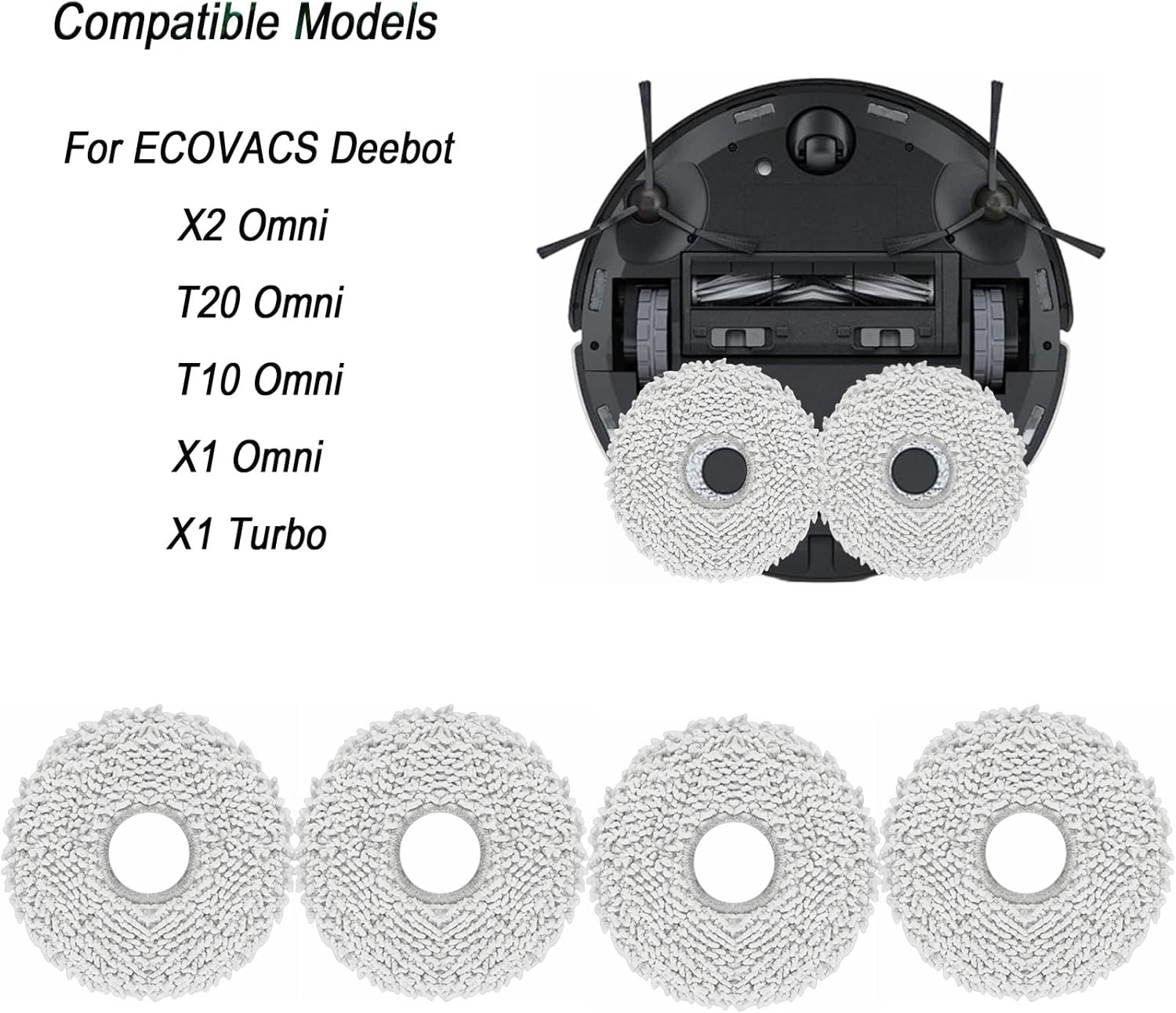 Applicable model: Mop pads are suit for ecovacs x2; X2 OMNI; T20 OMNI; t10 omni; X1 OMNI; x1 turbo; T30 Pro, for Yeedi M12 pro+ Robot vacuum cleaner. Confirm your robot model before purchase