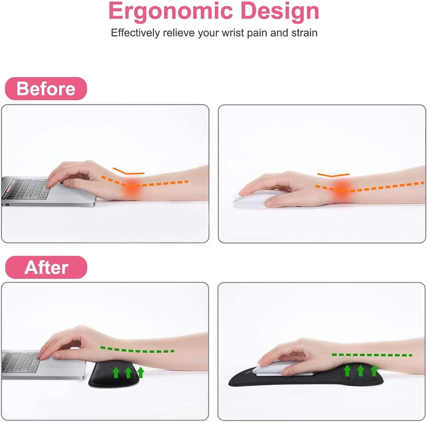 Ergonomic design with breathable and durable neoprene fabric and raised memory foam. Efficient for easy typing and pain relief. Provides soft support to relieve pressure and pain on your wrist and keep it in a natural and comfortable state.