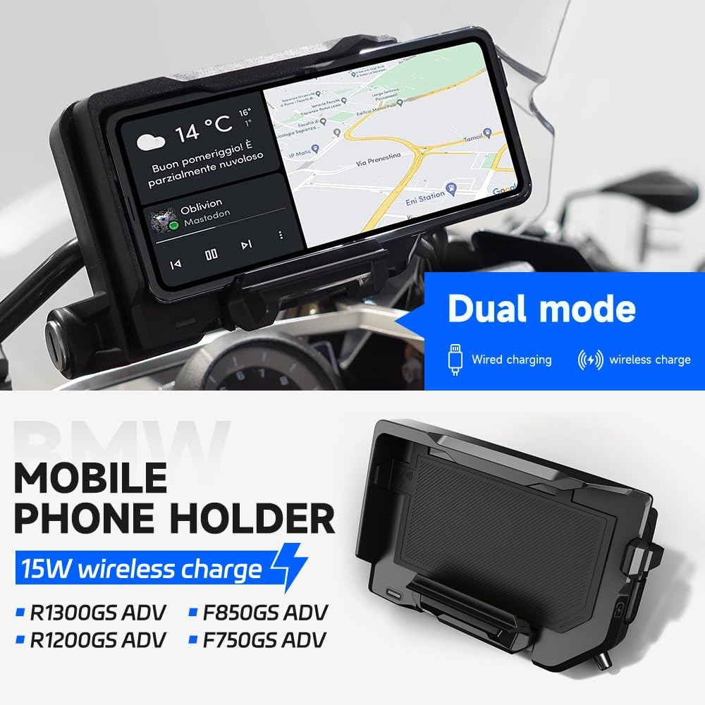 【Wireless Charger + USB-C Wired load】 Run the Panther motorcycle phone support supports the wired load and wireless load. Suitable for BMW R1300GS R1200GS R1250GS ADV S1000XR F750GS F850GS F650GS F700GS F800GS F900R F900XR CRF1000L CARGER WIRALLE CARGER FAST CARGO CARGO MOBILL OF NAVIGATION MOBILL.