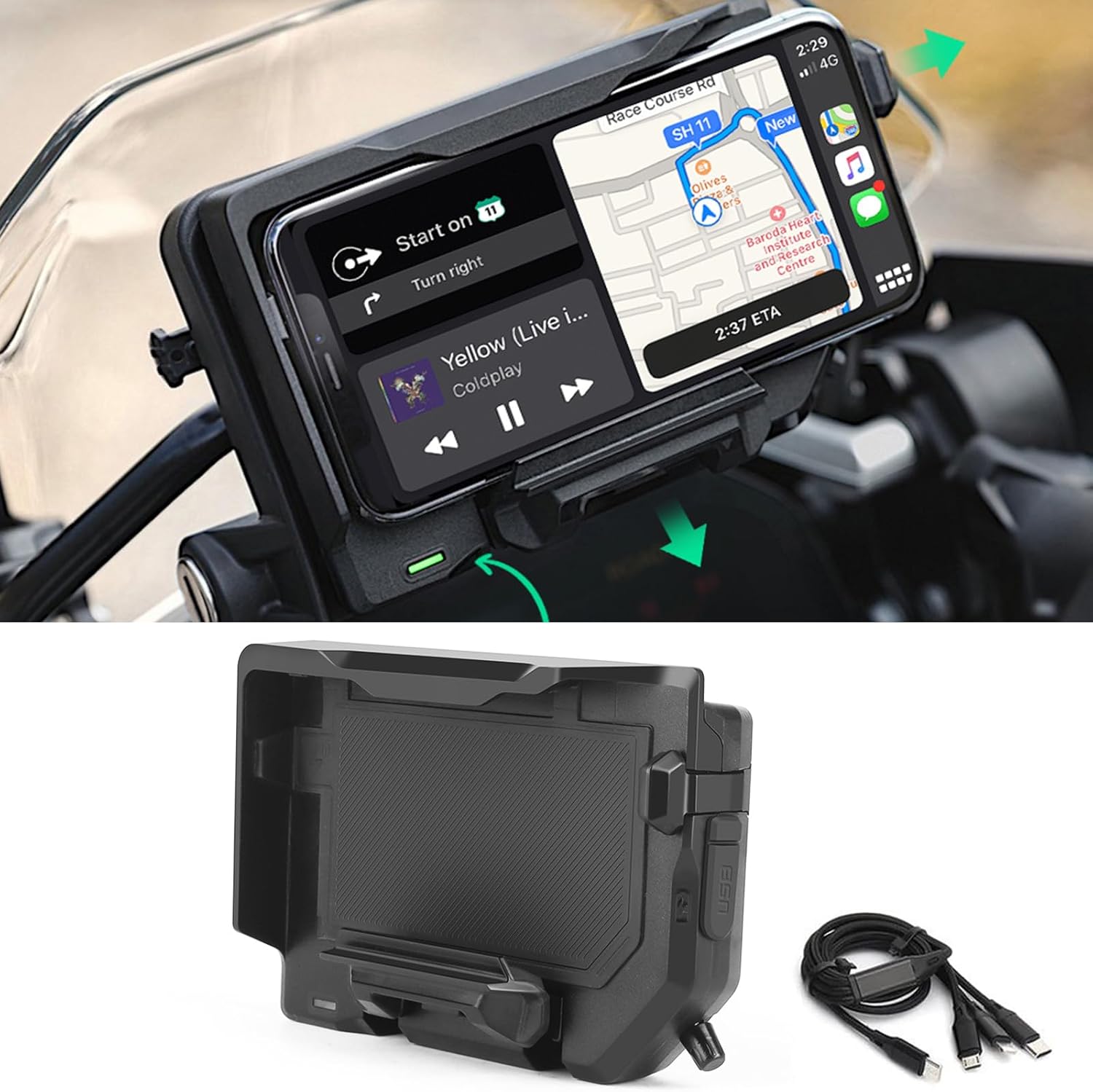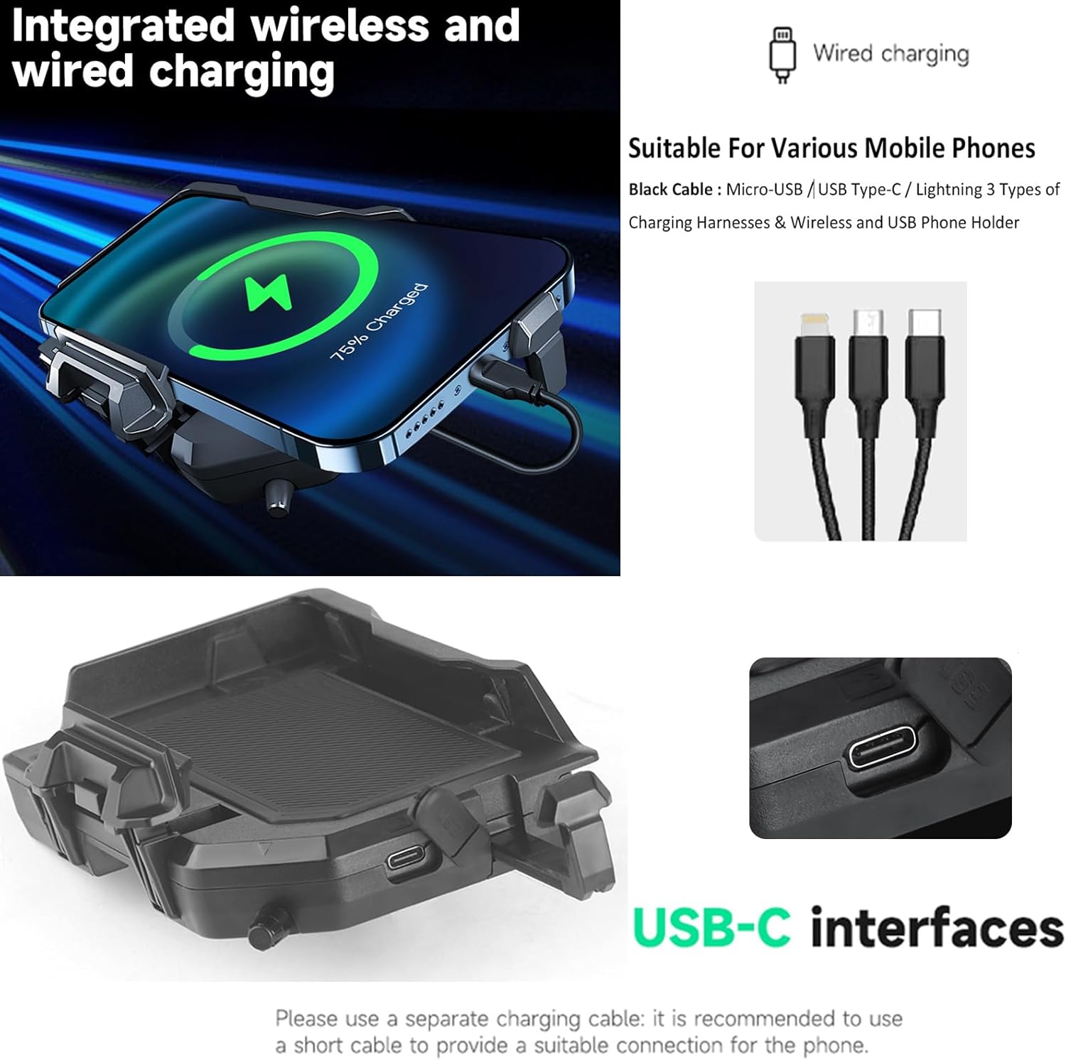 Mount of the motorcycle phone with 15W Wireless Charger and USB-C Fas …
