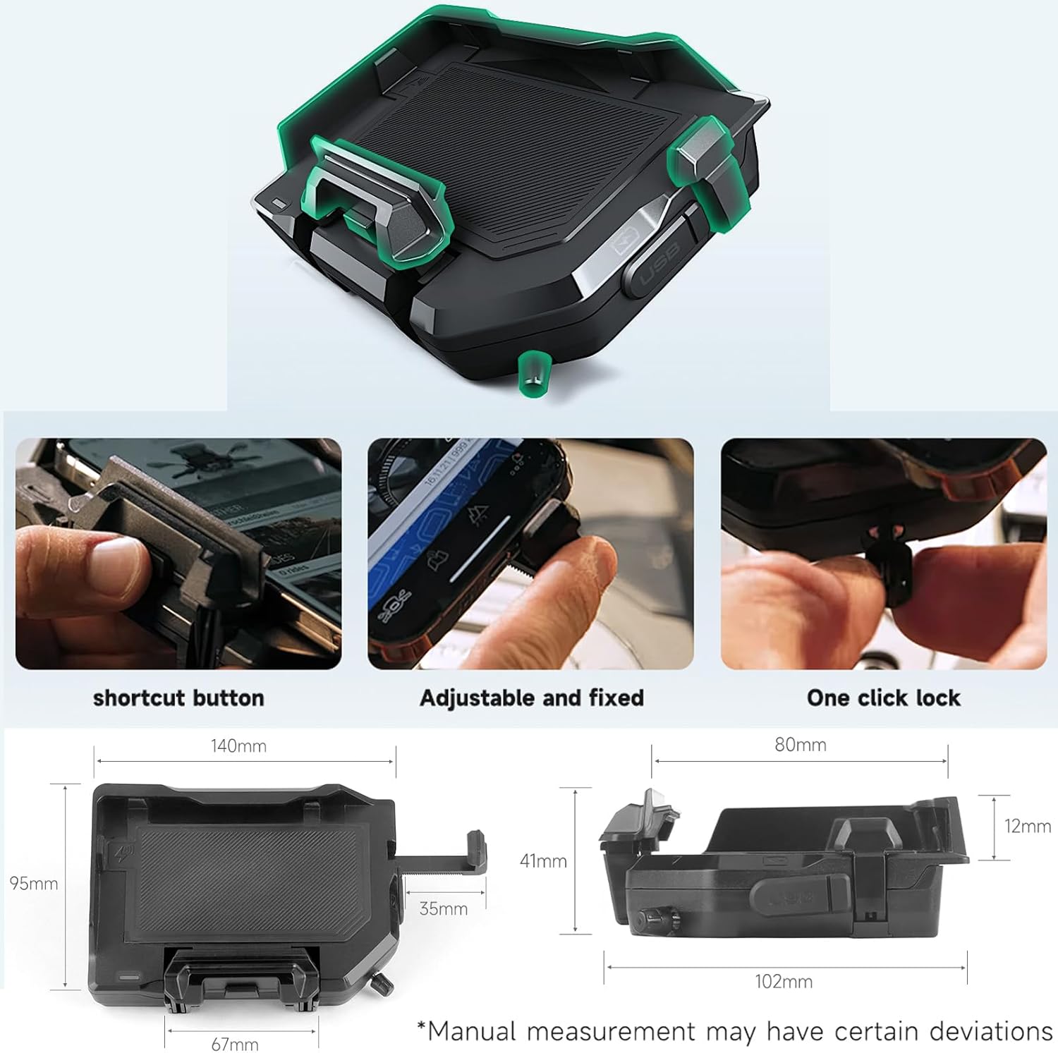 【Convenient use】 Our wireless motorcycle load support has added direct access keys, adjustable fixation and blocking functions of a button, which allows you to easily put your phone in just a few seconds. It is simple to operate and easy to use, which allows you to enjoy the fun.