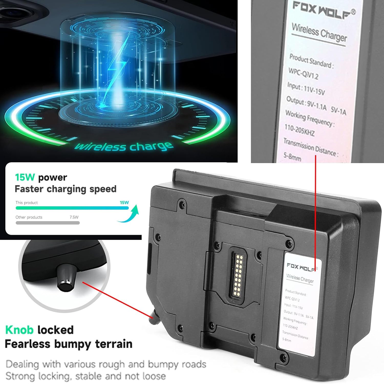 【Package and installation】 The package contains a wireless and adequate load support for several mobile phones Black cable: micro-USB /USB Type-C /Lightning 3 types of load harnesses. Note: This wireless charger is only suitable for the BMW Garmin navigation base, easy to install and use.