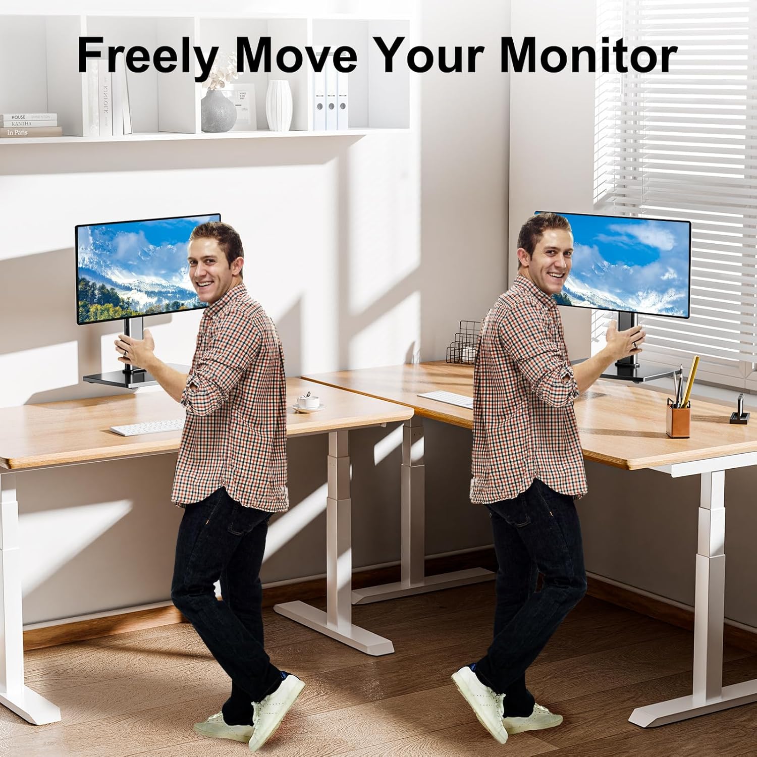 Avoid desktop damage: this is an independent desktop monitor support, it does not serve to pierce any washer hole or use any clamp, you can keep the monitor vertically, perfect for lazy people or those who do not want to destroy their beautiful desk. As it is not solved at the table, the support is easy to move.