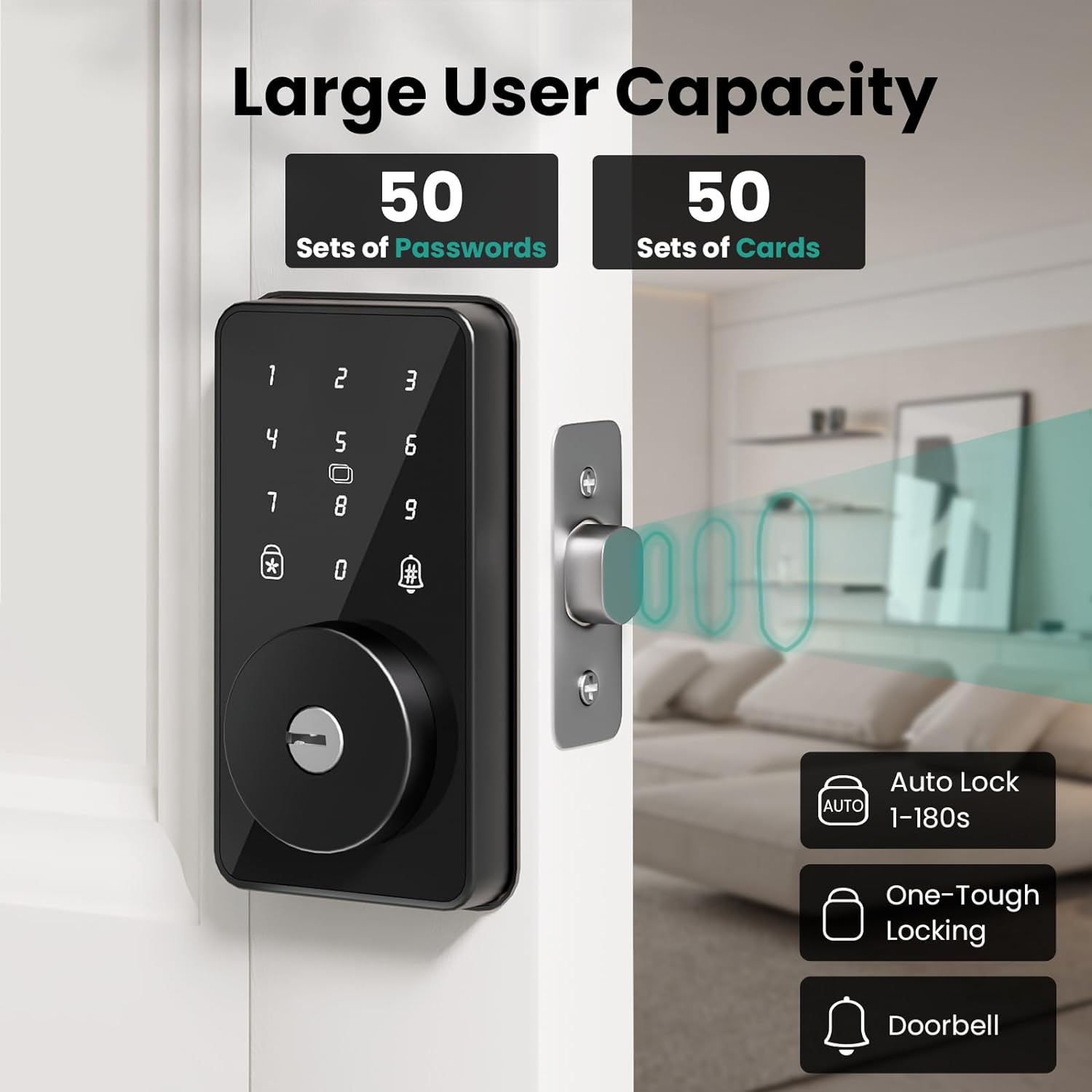 [Wide Application] The combination door lock supports entering 50 sets of passwords and 50 sets of IC cards. This smart deadbolt is suitable for a wide range of door styles and materials. The keypad deadbolt can be used for entry door, home, office and rental. This keyless door lock is also ideal for Airbnb short-term rental hosts, rental property managers, and independent living residents. You can generate unique and long-term access codes remotely and share them with your visitors.