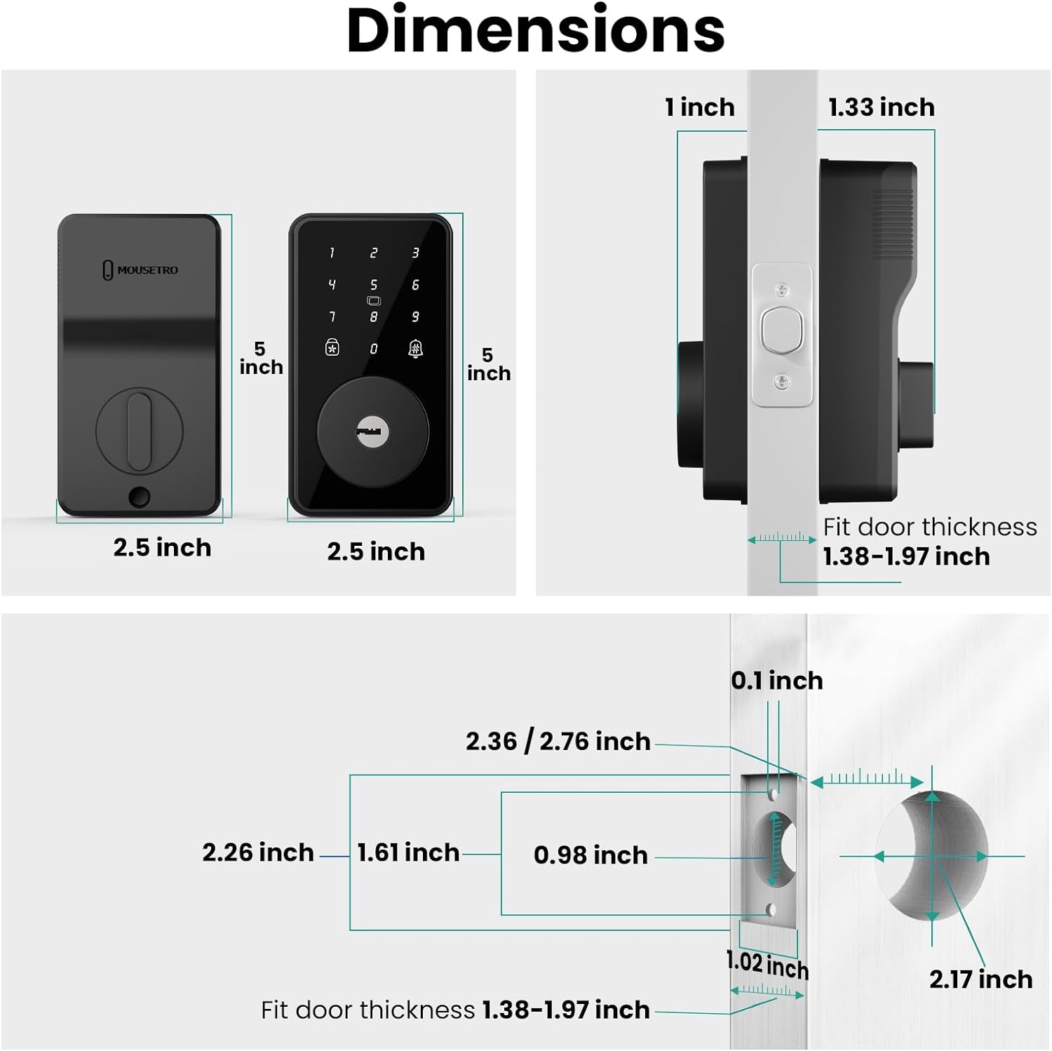 [Easy Installation] This smart deadbolt lock fits doors 35 to 50 mm (1.38 to 1.97 inches) thick. It is very easy to install and comes with a hole drawing, accessories and manual. We also have a detailed installation video to show you how to install the digital door lock step by step. Please contact us if you have any problems during installation. We are willing to clarify all your doubts.