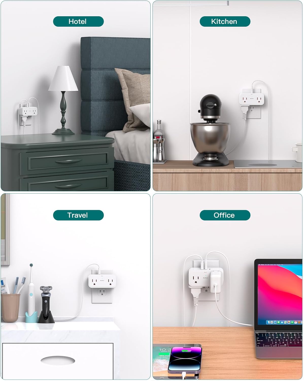Portable Size for Travel Essentials: With a lightweight design of only 0.41 lb, the low profile design multi outlet wall plug can easily fit into your suitcase, backpack and handbag; You can take this socket splitter anywhere, such as home, hotel, office, and college dorm.