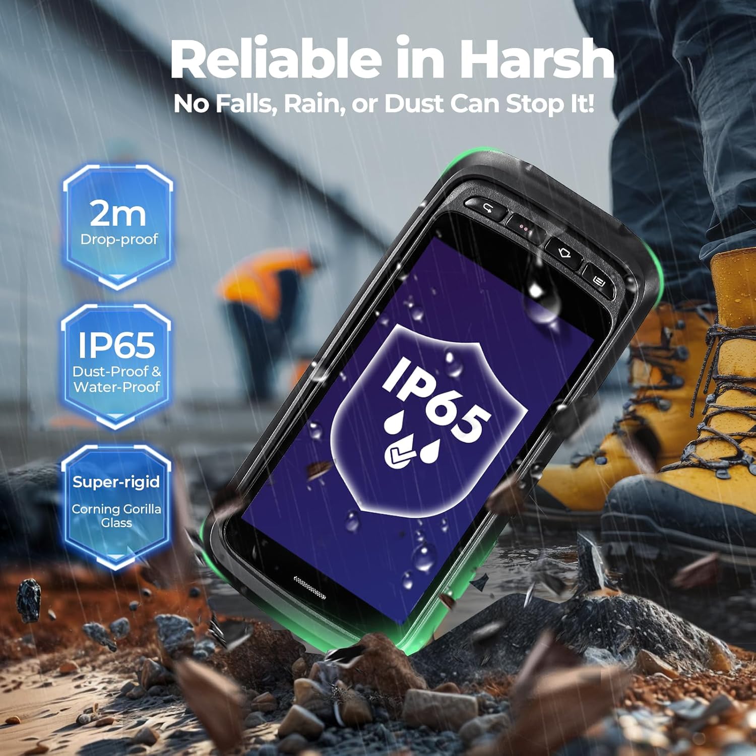 ✅[Tough & Durable] The Data Terminal with IP65 degree water resistance, and resistance to the fall of 1.5 m / 4.9 feet also comes with silicone around the device, a cord and a friction design that has triple protection to work. It is quite suitable for all types of fields, either indoors or outdoors. Such as industrial work, production lines, logistics, shipping and inventory management