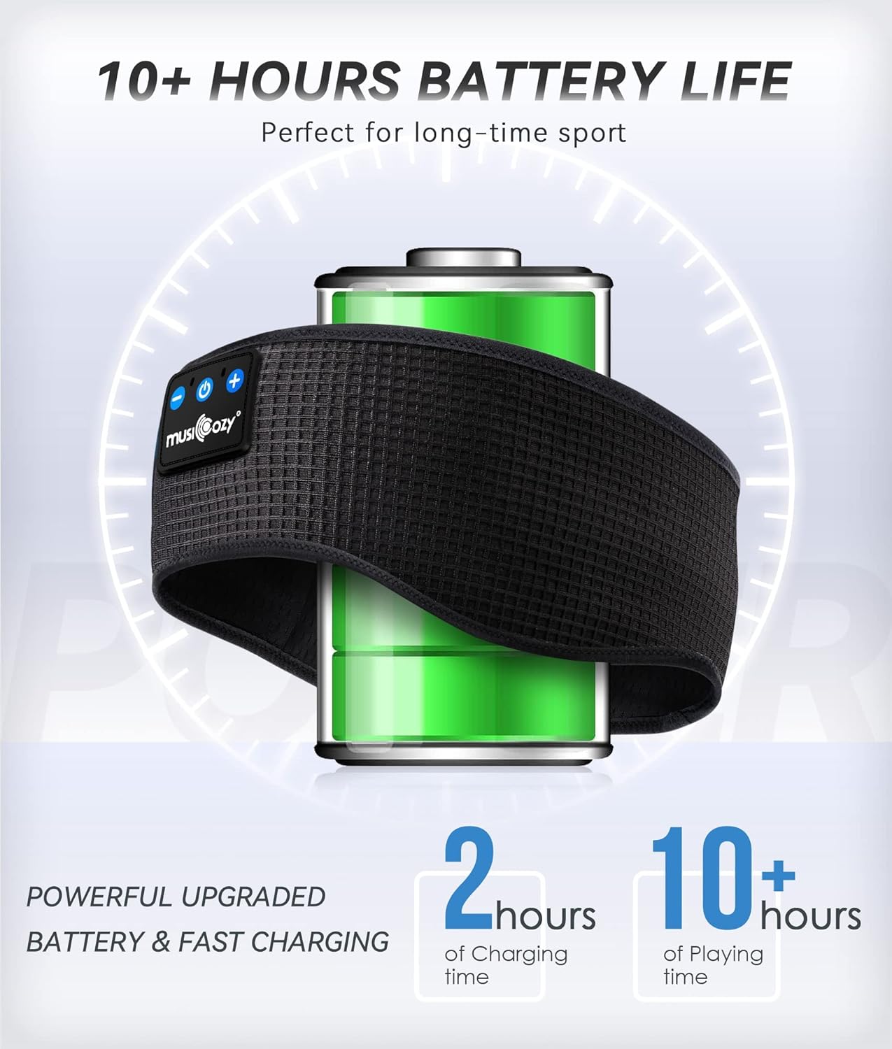 Wireless Headband with Extended Playtime: MUSICOZY sleep headphones feature a powerful rechargeable lithium battery that delivers up to 14 hours of continuous playback on a single 1-2 hour charge. Enjoy uninterrupted listening pleasure all day long, without missing a beat. Thanks to its advanced battery technology, our product provides a longer lifespan of up to 1 year. This ensures greater enjoyment of your music, even after continuous use.