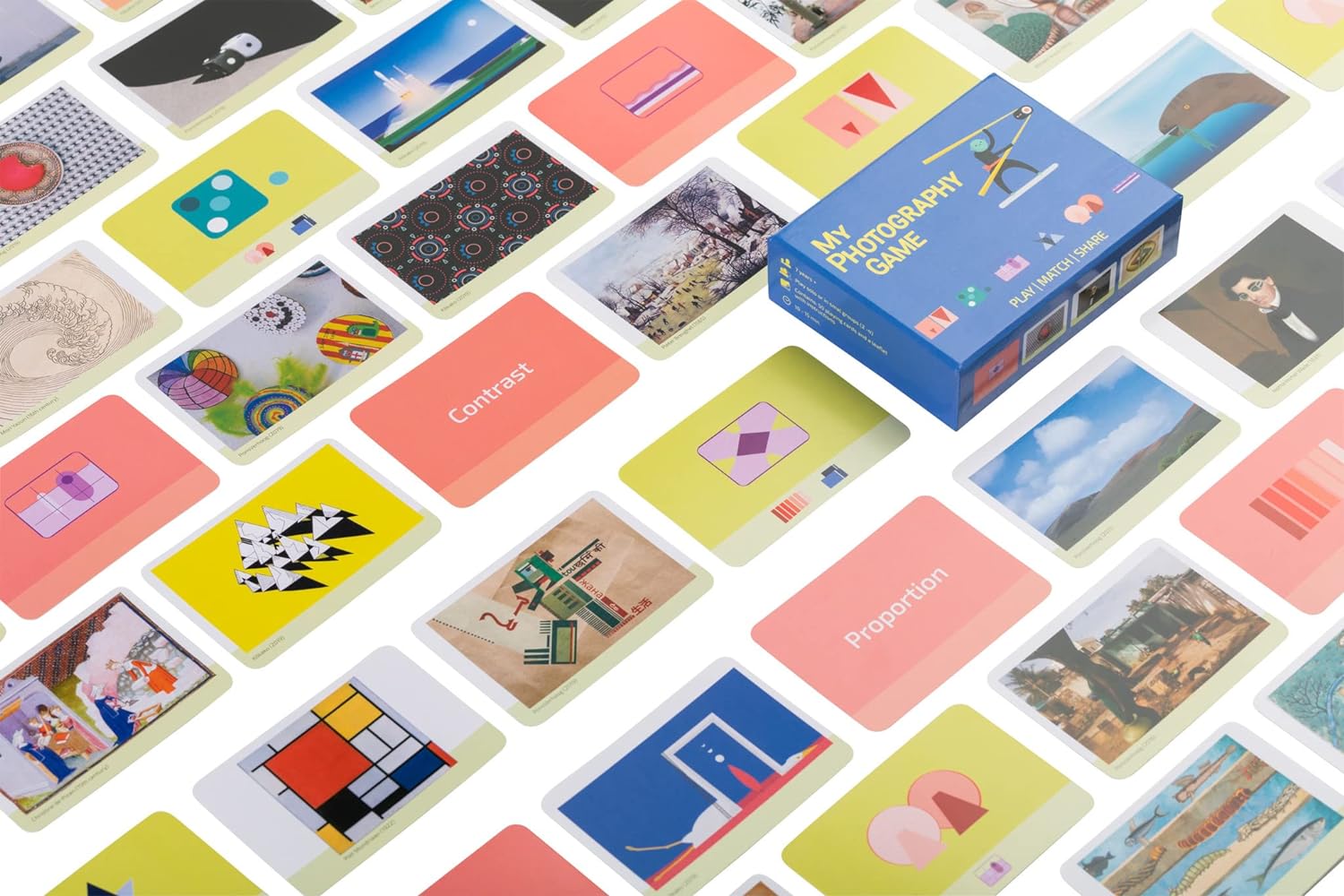 Learn the basics of photography while playing one of three game options and get inspired to take your own photo. Place all images face up, choose a theme card from the pink deck, and collect four image cards representing that theme. Or play this game in reverse, matching the image one by one to the correct symbol. For a more advanced option, play memory with the face-up symbols and find pairs with overlapping themes. Finally, get inspired by looking at a pair, three of a kind, or a quartet of cards and take a smartphone photo that represents the same theme. Upload it to the website and share it with your friends!