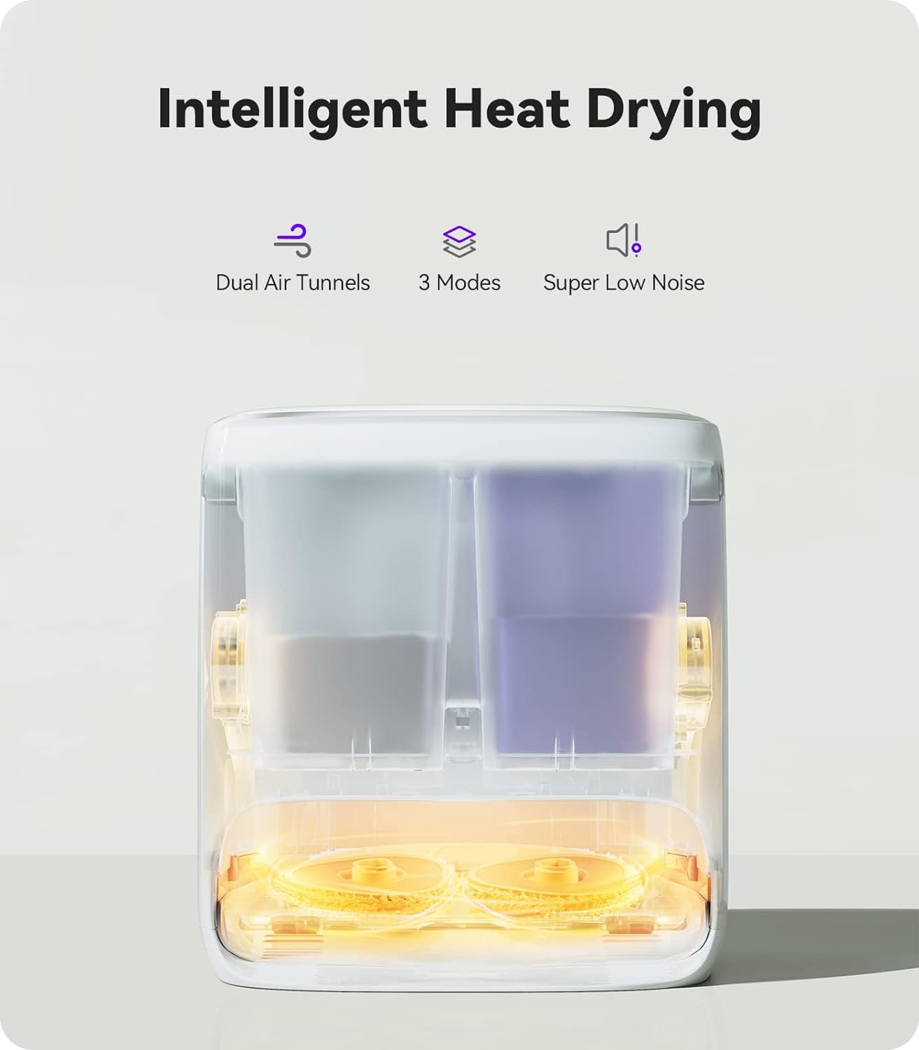 🟣 Three Mop Drying Modes: Mop pads may get dirty if not dried thoroughly after mopping. Freo's combo robot vacuum and mop features dual air tunnels with 40℃ gentle heat, ensuring the mop pads are completely dry after every use. Every mopping is simple and hygienic.