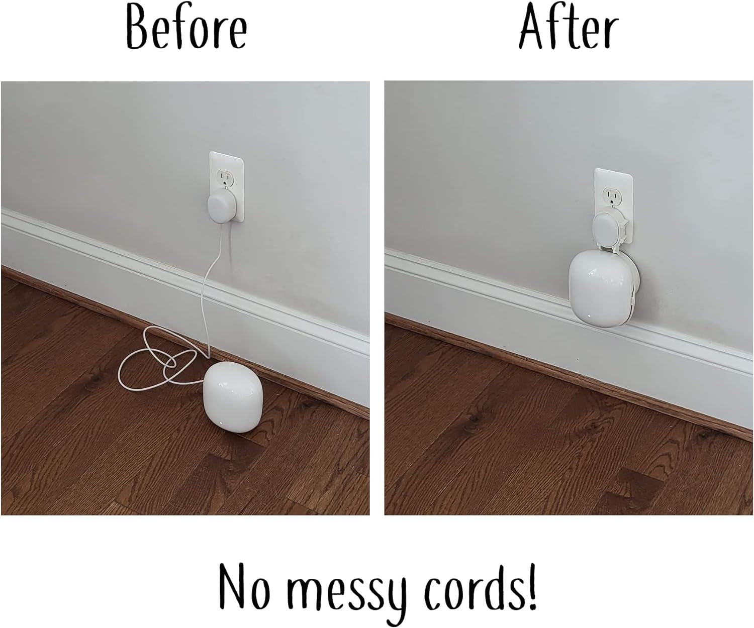 Simple and easy to use Hides cables from view Works on vertical and horizontal outlets Easy to install Google Nest WiFi Pro Genie Wall Mount Outlet Holder [Make your smart home clutter-free]