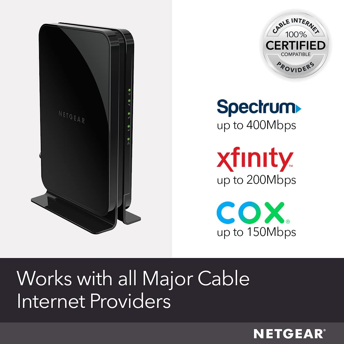 Netgear CM500 high -speed modem provides a high -speed cable Internet connection, up to 680 Mbps. It is certified by cable laboratories and with DOCSIS 3. 0 is 16 times faster than 2. 0 devices. It works with the US cable supplier. UU. Comcast Xfinity & More. It is not compatible with cable grouped voice services.