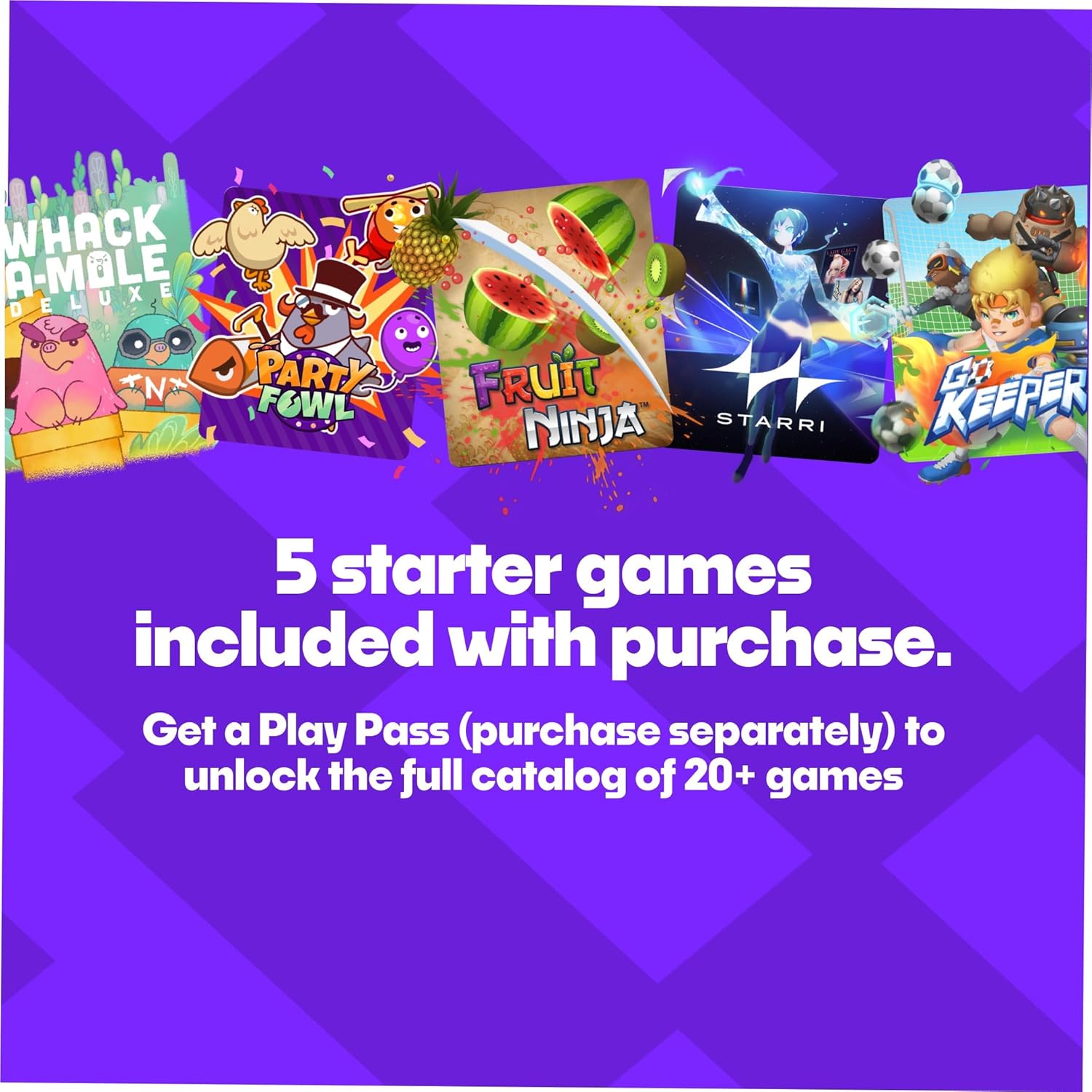 5 games are included with the purchase of Nex Playground, including Fruit Ninja. You can also purchase a Play Pass subscription ($49 for 3 months or $89 for 12 months) to unlock the full catalog, which includes more than 20 additional games.