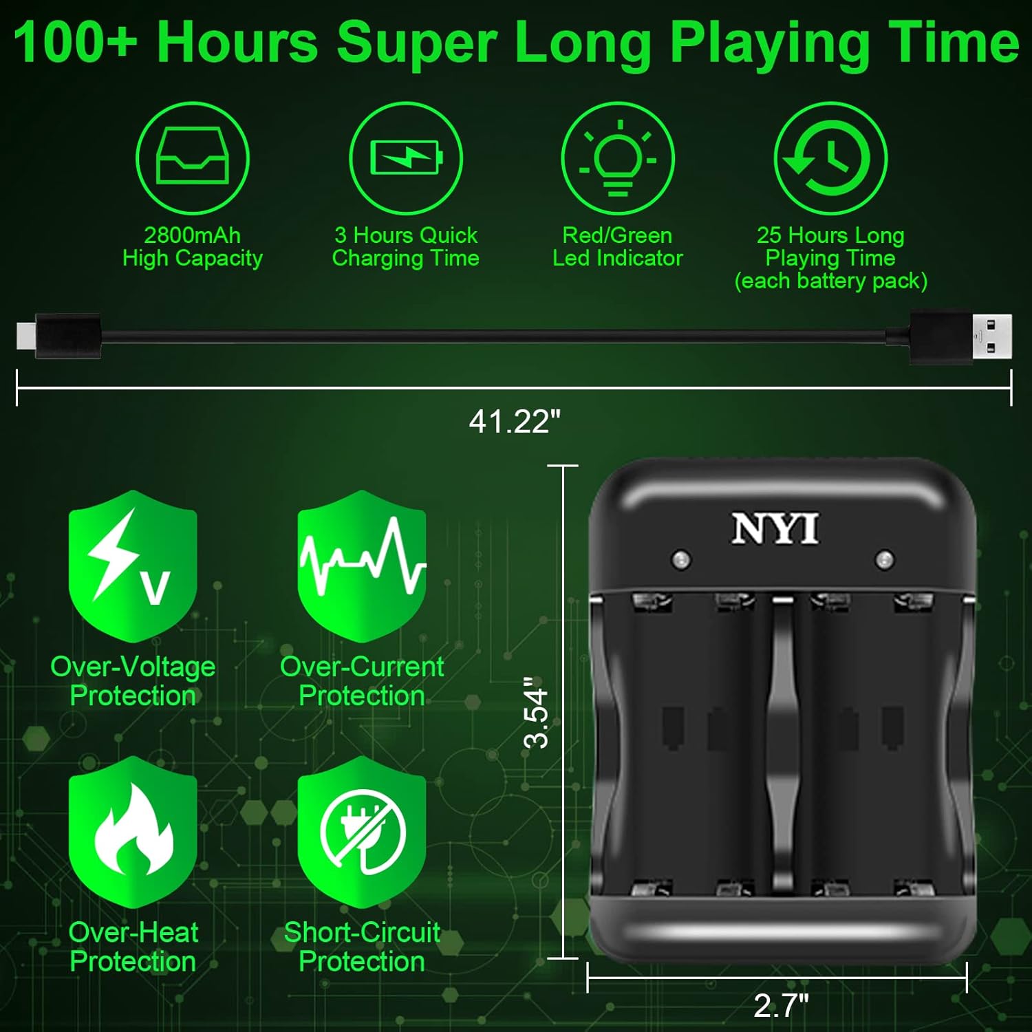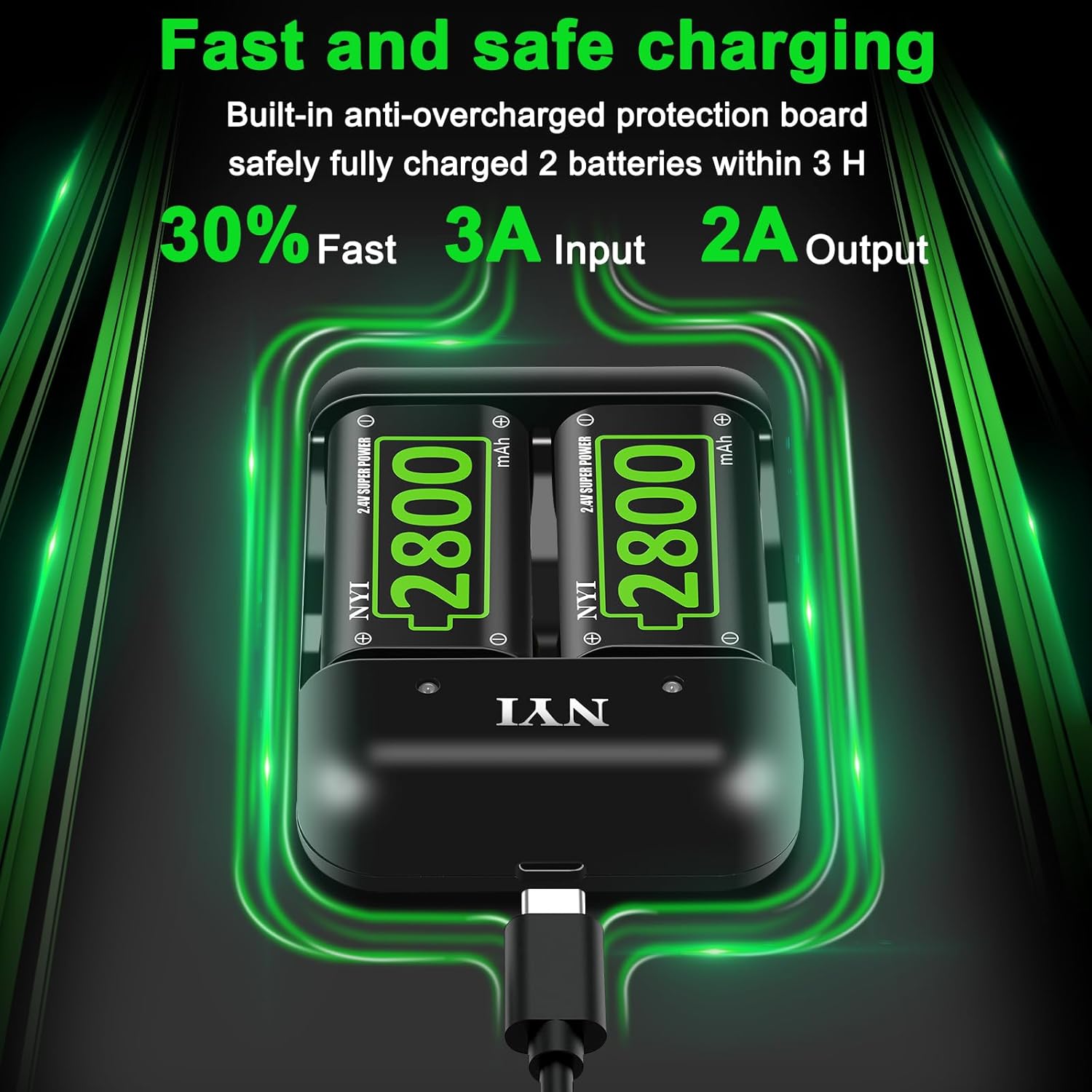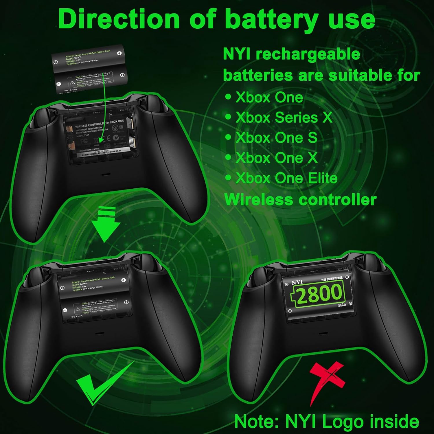 Customer Service: The Xbox battery can recharge more than 2000 cycles, which can save your money and have CE/FCC/Rohs certification, so you can buy with confidence. If you have any questions, do not hesitate to contact us, NYI sincerely gives you a good post -sales service!