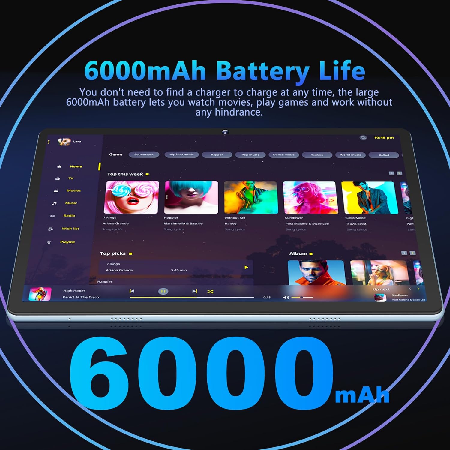 【LARGE BATTERY, DUAL CAMERAS】Tablet with built-in 6000 mAh battery ensures longer battery life; Dual HD Cameras (Front 5MP + Rear 8MP) + Dual Speakers to meet all the needs of taking photos, recording videos, watching movies, etc.
