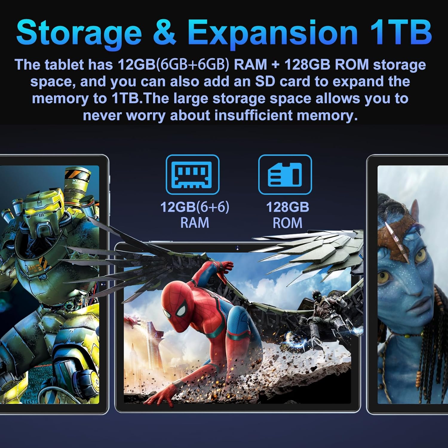 【LATEST OCTA-CORE PROCESSOR 2024】Oangcc A15 tablet comes with the latest Android 13 operating system, built-in octa-core CPU, 12GB RAM (6+6 expansion) + 128GB ROM mass storage, providing a jump start Fast application and smooth gaming experience. . (Expandable up to an additional 1 TB, without SIM slot ⚠️)
