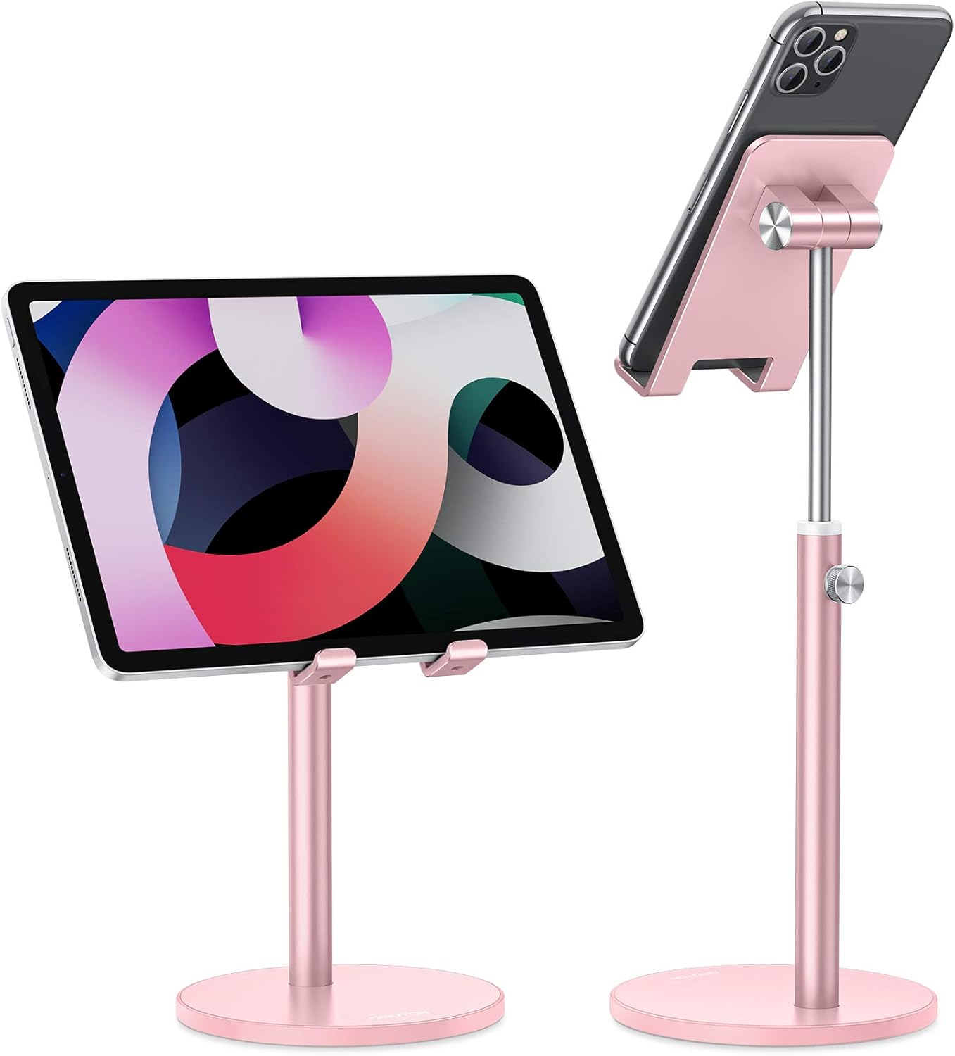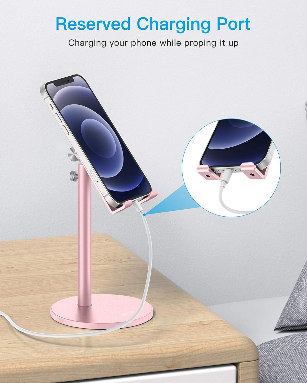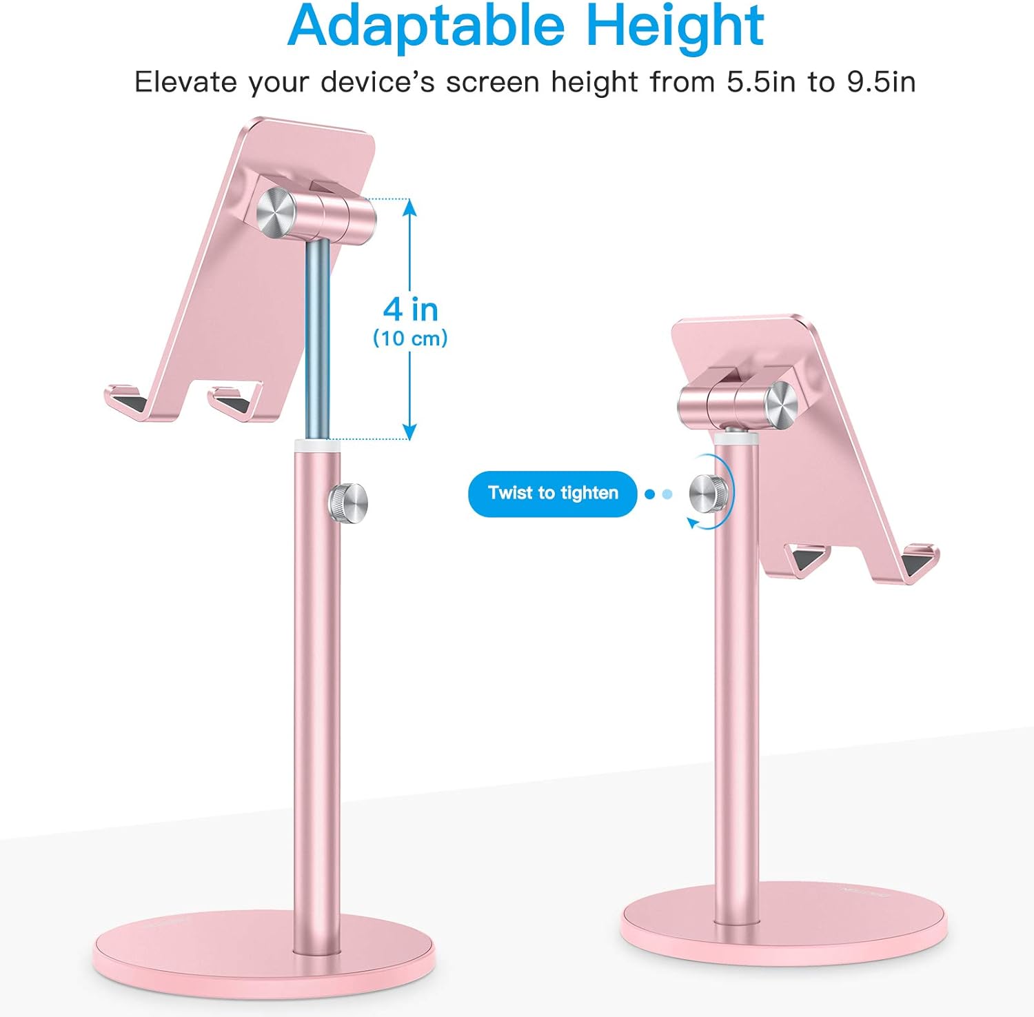 ADJUSTABLE HEIGHT & ANGLE: With adjustable height (5.7-9.0 inches) and tilt range (up to 45 degrees), the cell phone stand offers optimal viewing angles for gaming, watching videos, Facetime, etc, reducing the strain on your shoulders and neck.