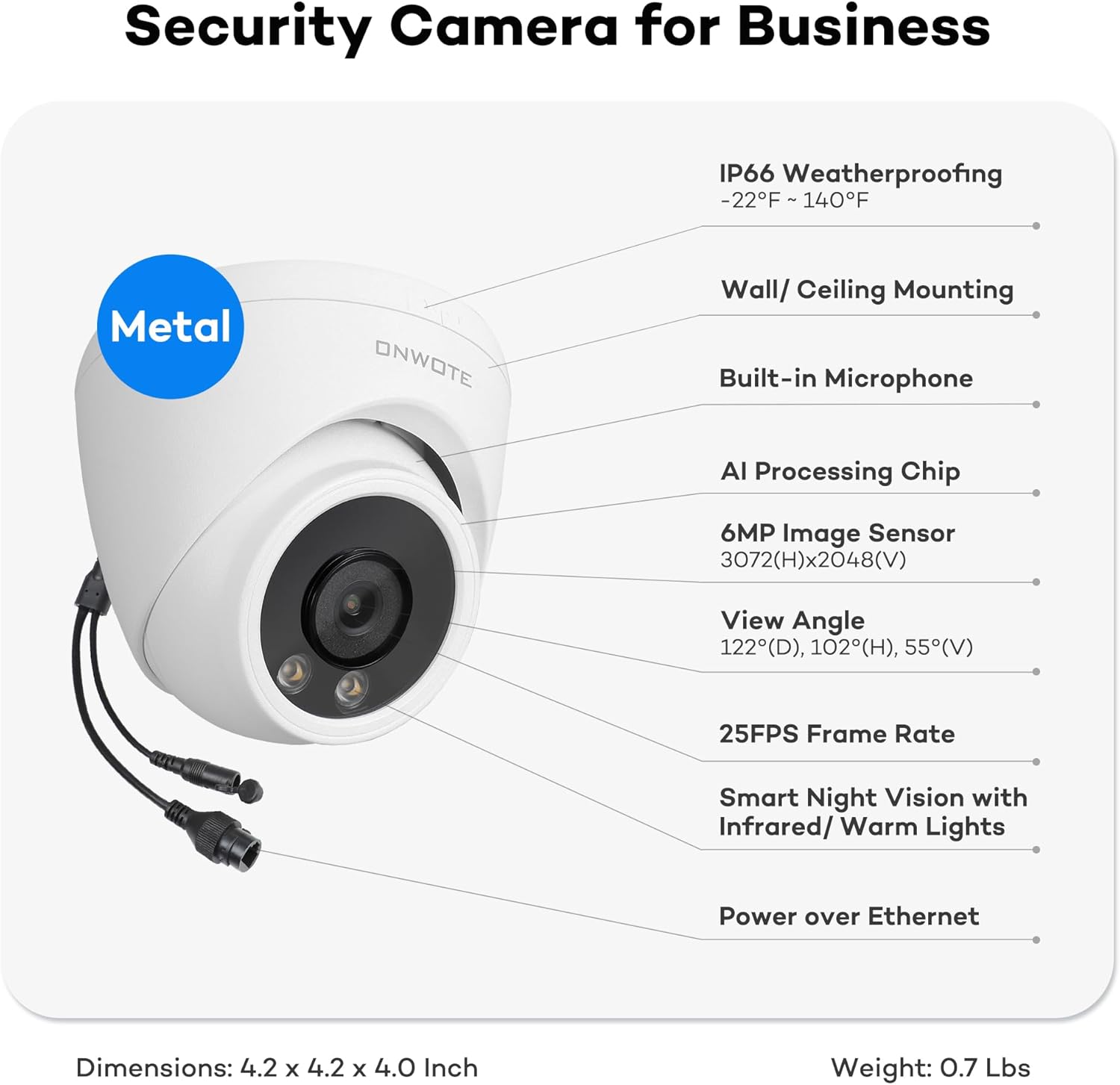 Durable IP66 Housing: Metal housing, indoor or outdoor, fully weather resistant.