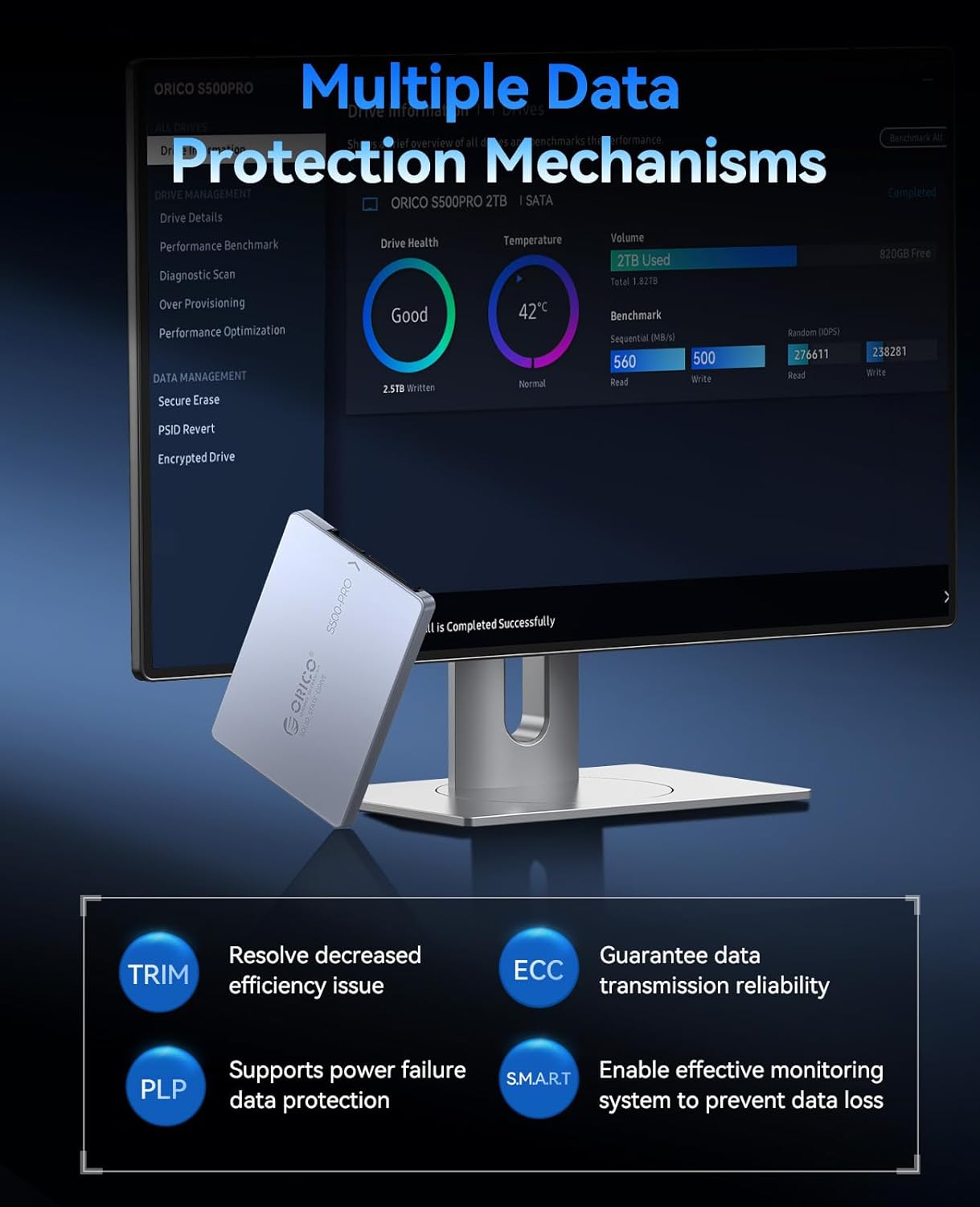 Reliable and stable performance: Using advanced Flash Nand 3D technology, the 256 GB SSD includes bad block management, ECC errors correction, intelligent monitoring, equipment commands and energy loss protection to guarantee the stability and integrity of long -term data