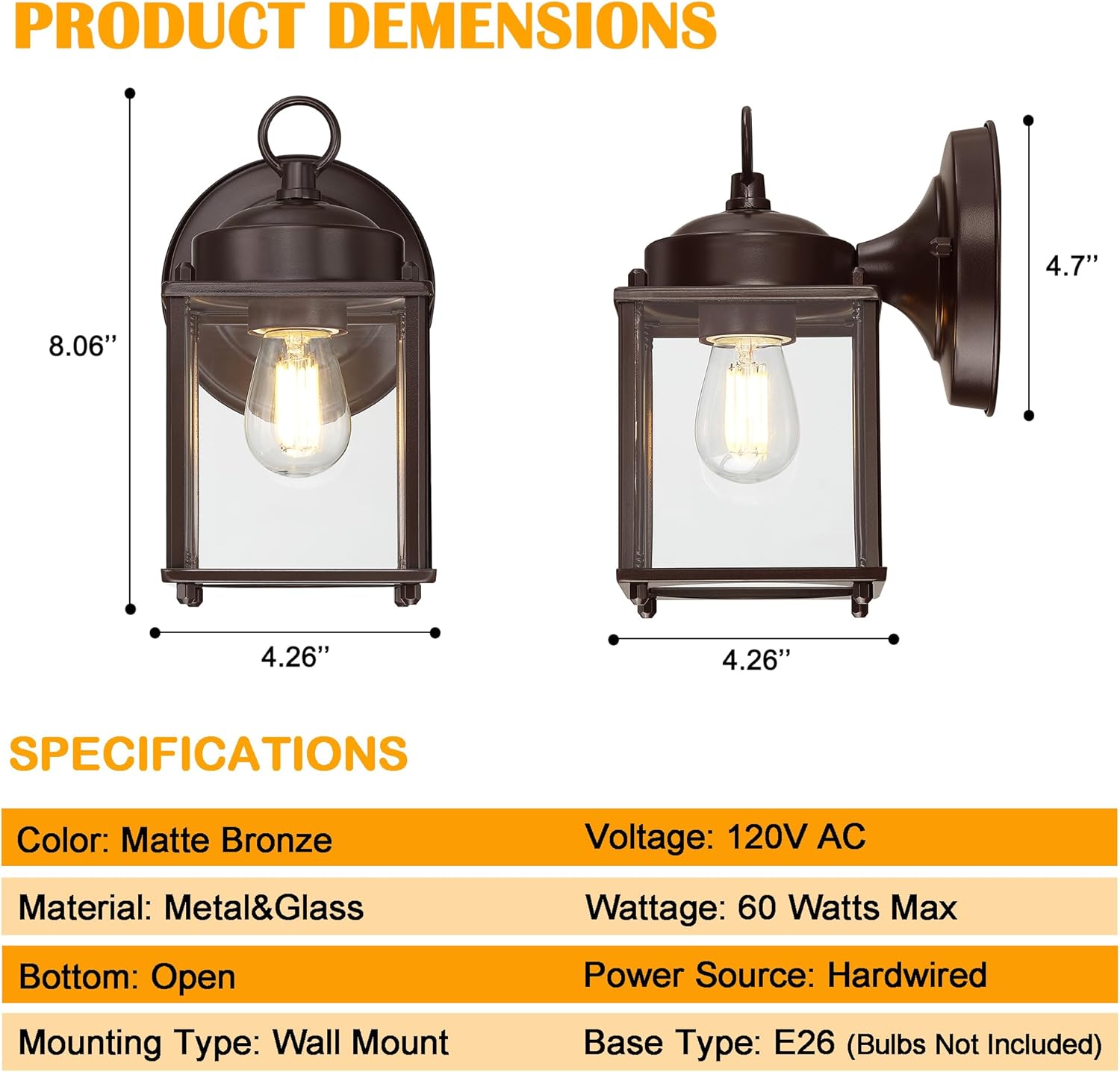 Open and easy background installation: The lower design of this wall flashlight is open, can replace several bulb styles easily and clean the lamp more conveniently. This outdoor lamp comes with all detailed installation assembly and instructions, which helps you install faster.