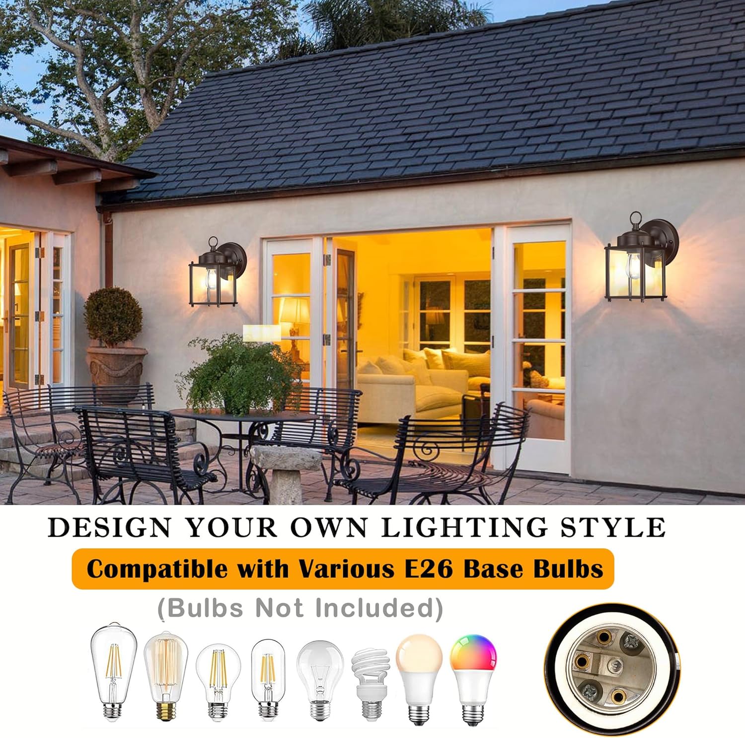 Outdoor wall lights have a standard E26 bulb base built -in (60W maximum, bulb not included), any E26 base bulb is compatible with CFL, LED, edison bulbs, incandescent and halogen bulbs, etc.