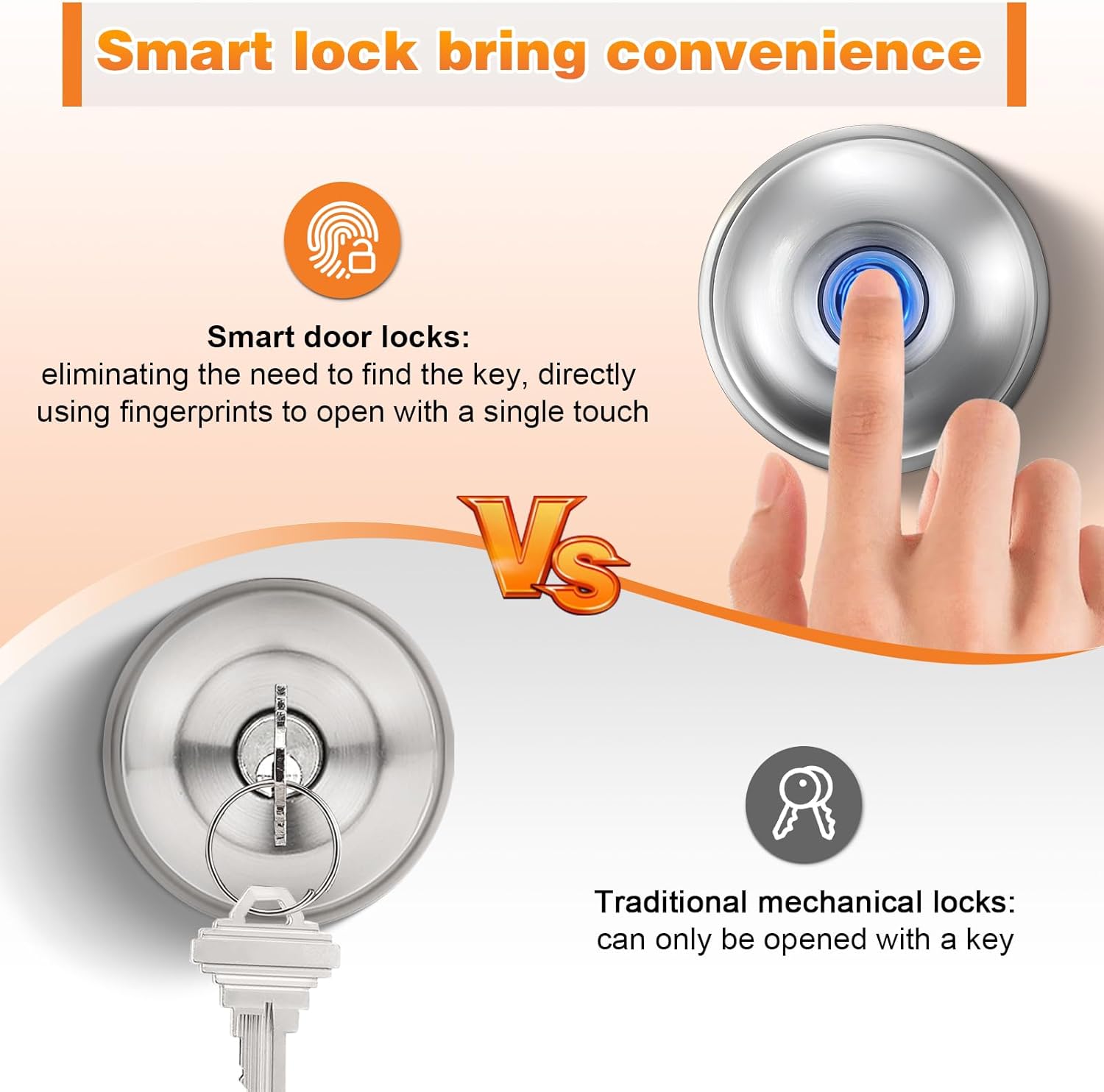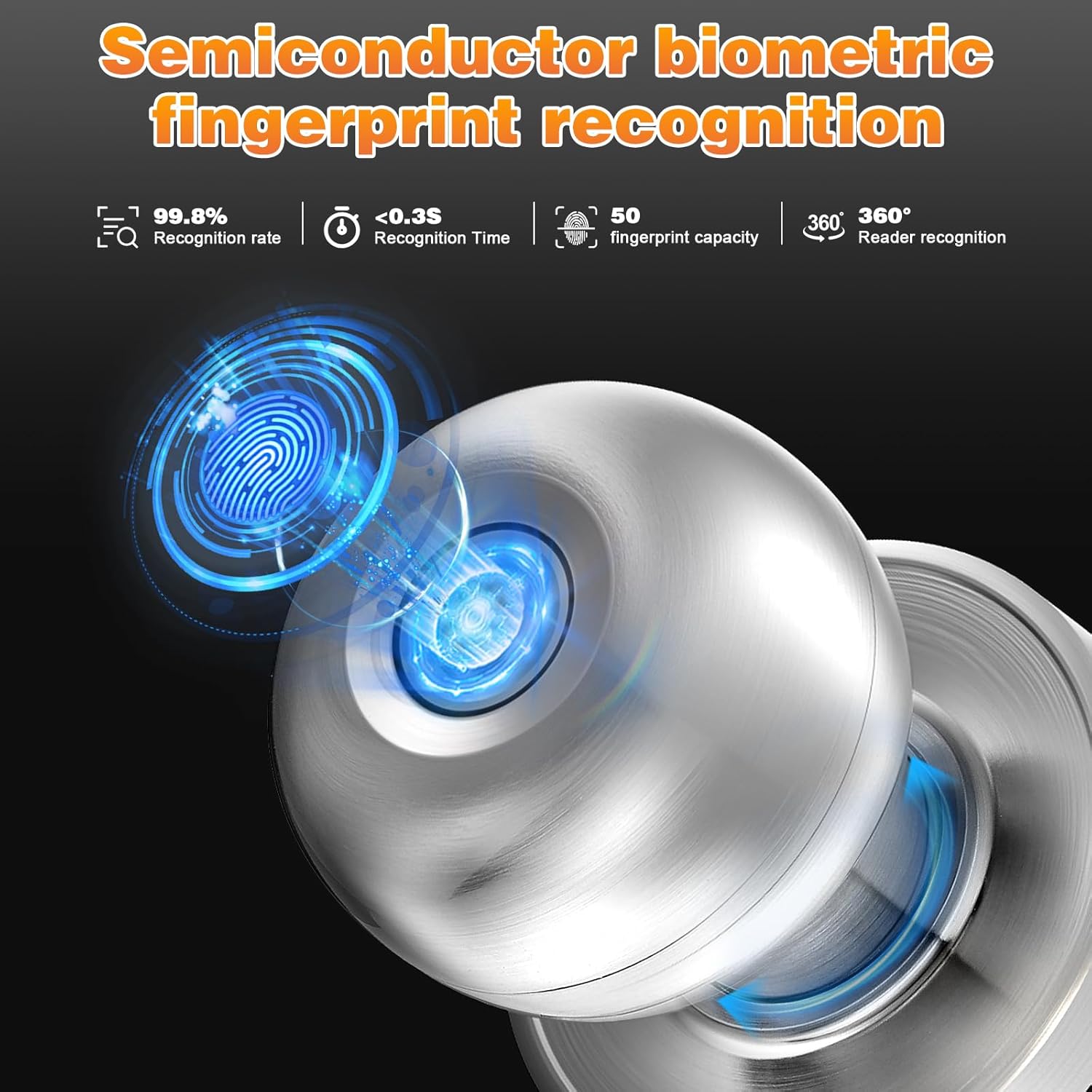 【Unlocking fingerprints】 This electronic door lock with mango uses biometric technology, with a recognition rate of up to 99.8%, you can accurately identify its fingerprint and unlock the door in just 0.3, safely accommodate up to 50 fingerprints, ensuring access without seams for multiple authorized people;