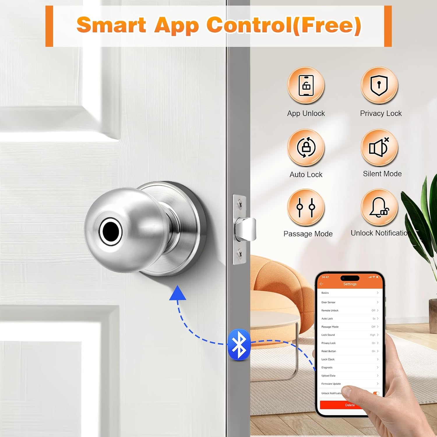 【Automatic block】 The smart knob will be automatically blocked after the door is closed, the automatic blocking time is 5S by default, ensuring the safety of your home even when you are in a hurry. You can also establish the lock time of 5 to 60 in the application.