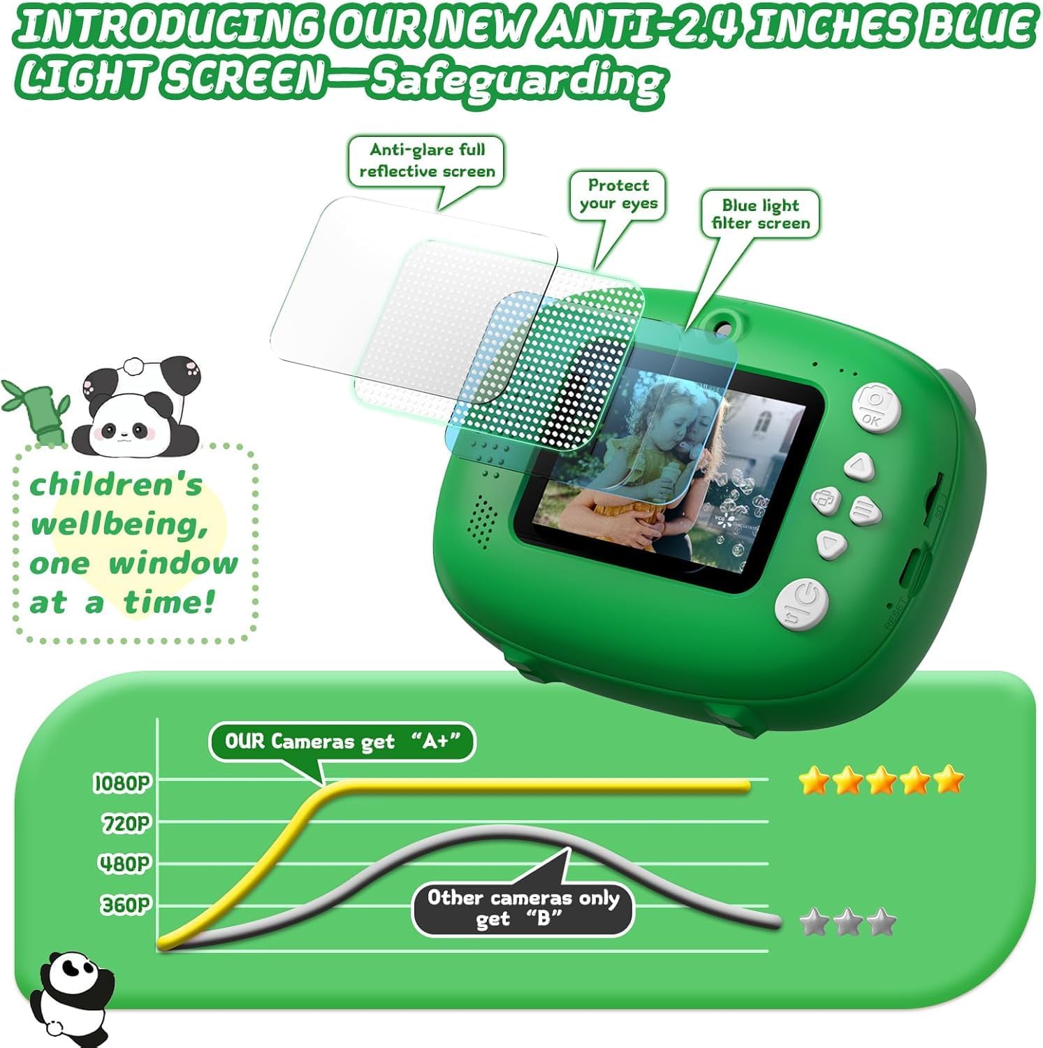 CRYSTAL CLEAR MOMENTS WITH EYE PROTECTION: Our instant print camera is not only cute, it's packed with technology to protect those precious eyes. It features an anti-blue light screen, 1080P HD video recording, and a sharp 12MP lens. Capture every laugh and smile in surprising detail.